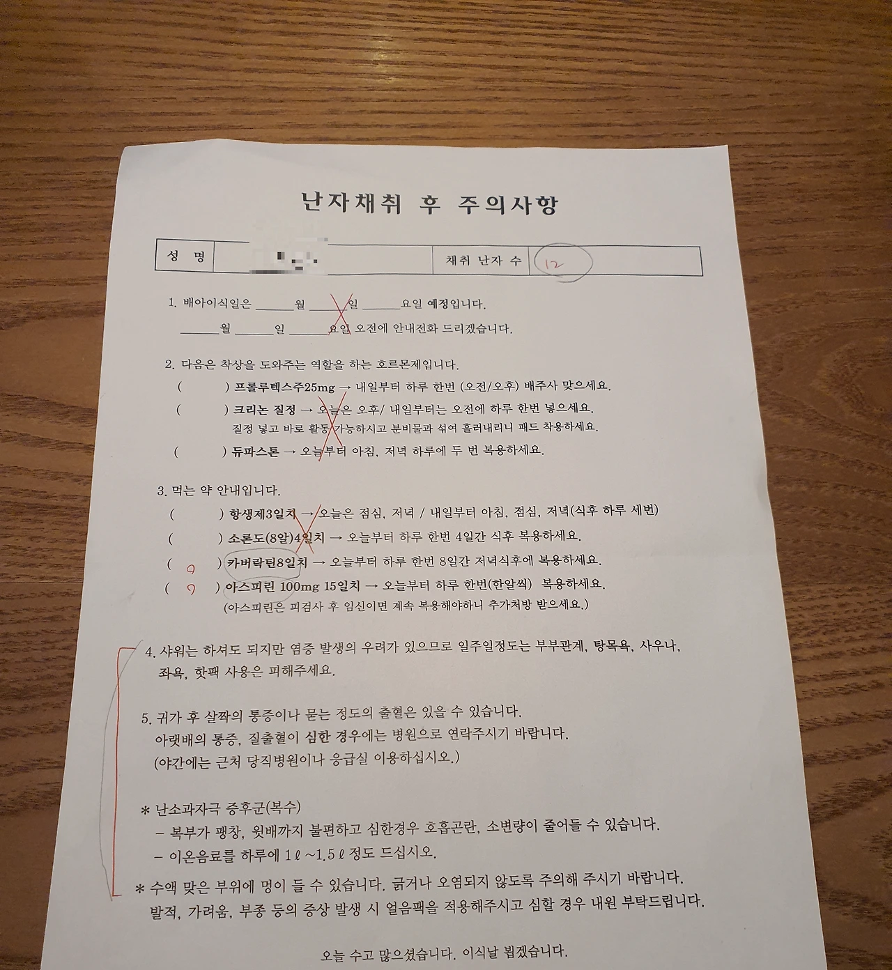 난자채취 후 '세트로타이드'라는 주사와 여러 가지 알약을 처방받았다.