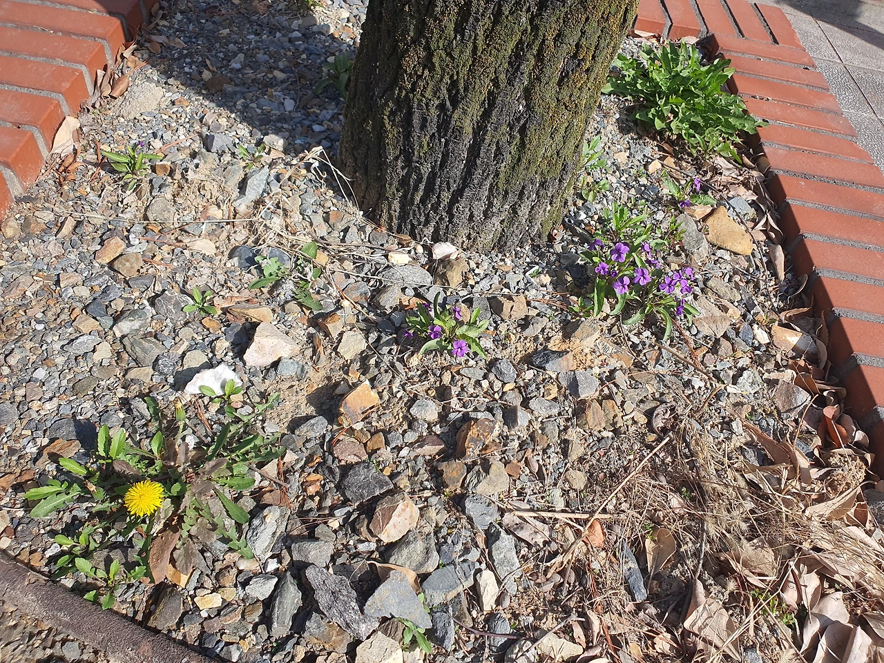 작은 민들레와 이름을 알 수 없는 꽃들이 보인다.