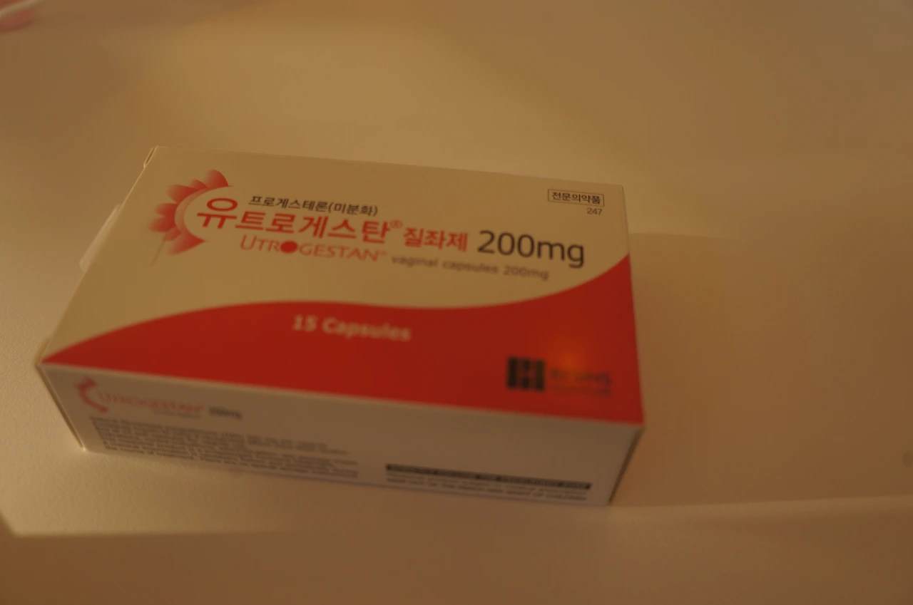 약국에서 처방전을 내고, 유트로게스탄 질정 두 박스를 샀다.