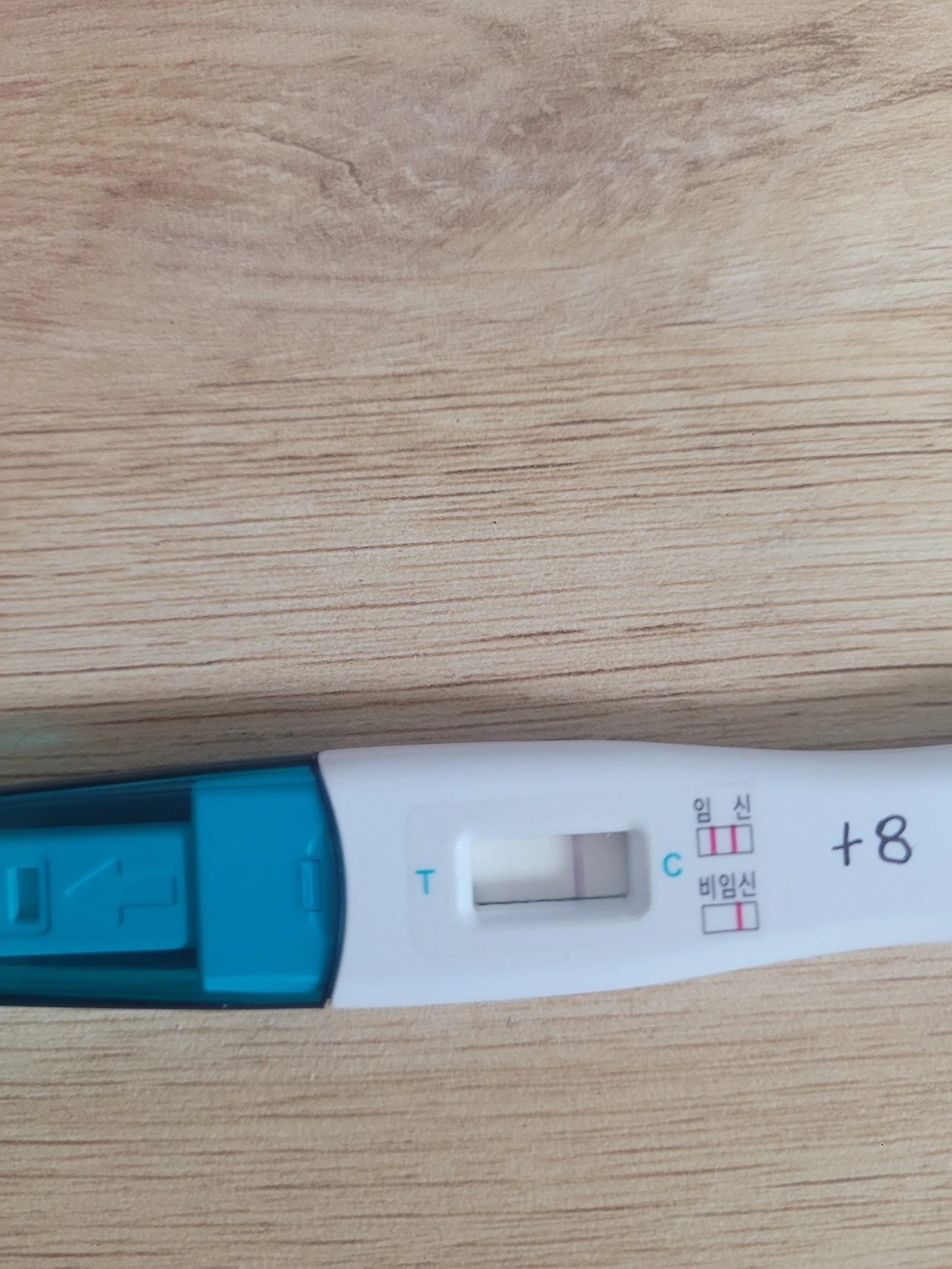 이미 그제부터 임신은 포기했기 때문에 아침잠이 덜 깬 채로 임신테스트기를 했는데 희미한 줄이 보였다.