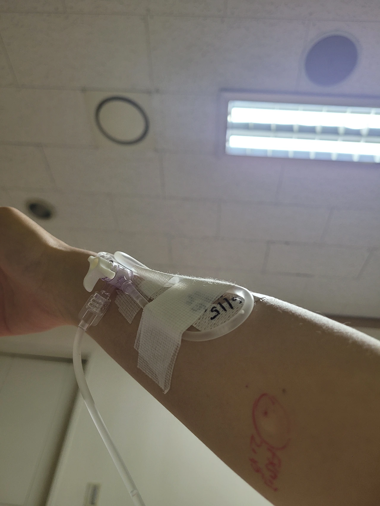 8시 30분쯤 간호사 선생님이 오셔서 항생제 알레르기 검사했던 부분을 확인한 후 "항생제 알레르기는 없으세요."하고 항생제를 투여했다. 큰 주삿바늘을 링거선에 꽂았기 때문에 나는 아무런 느낌도 나지 않았다.