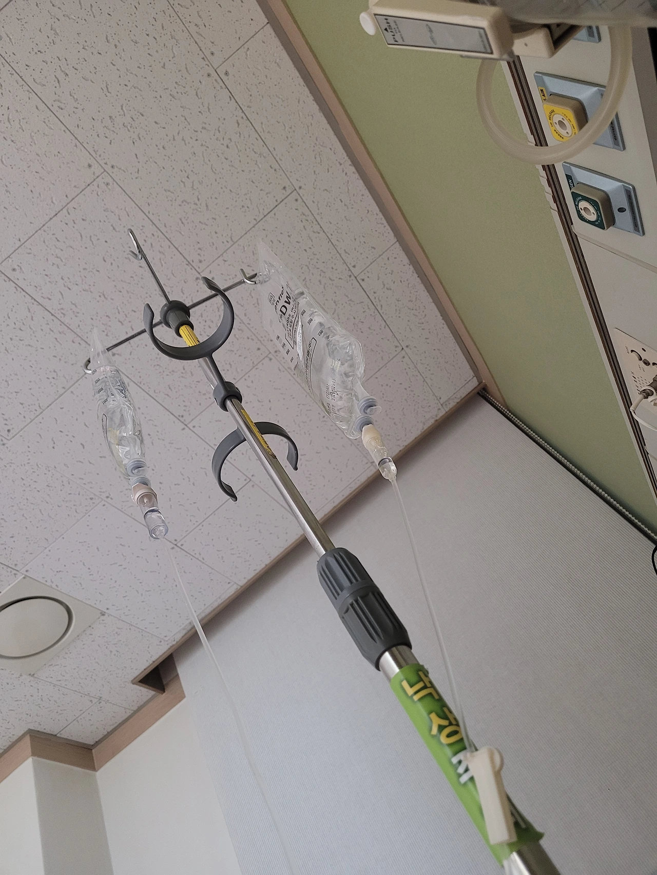 20분쯤 지났을까... 처치실에서 들어와도 된다고 했다. 휠체어에서 일어나서 의자에 앉았다.역시 실습생 때문에 의미 없이 휠체어를 탄 게 확실했다. 왜냐하면 처치실에는 링거를 고정할만한 게 없었기 때문이다. 간호사 선생님은 링거를 손으로 들고 있을 수밖에 없었다. 결국 실습생은 다시 내가 있었던 병동에 가서 폴대를 가져왔다.
