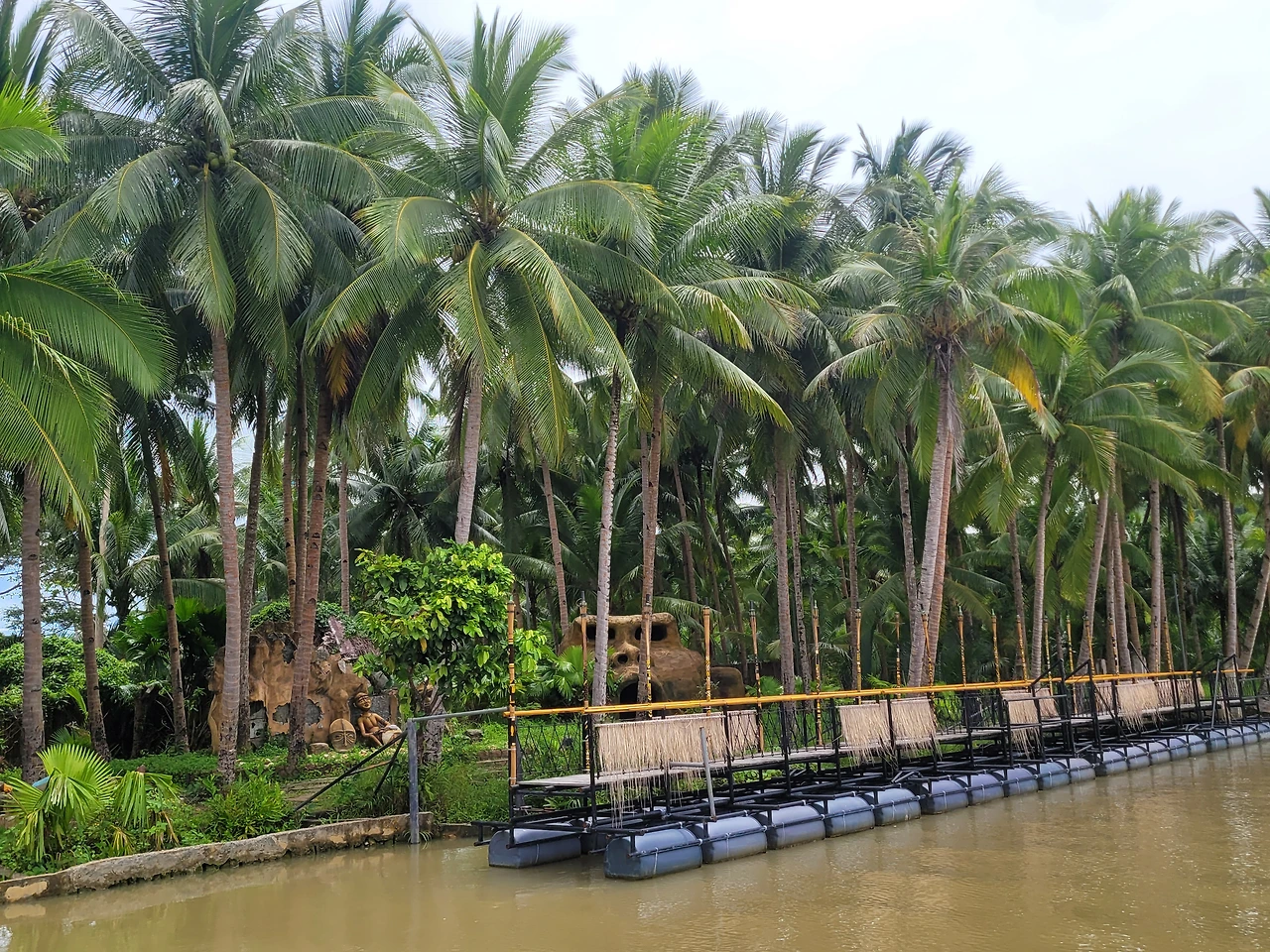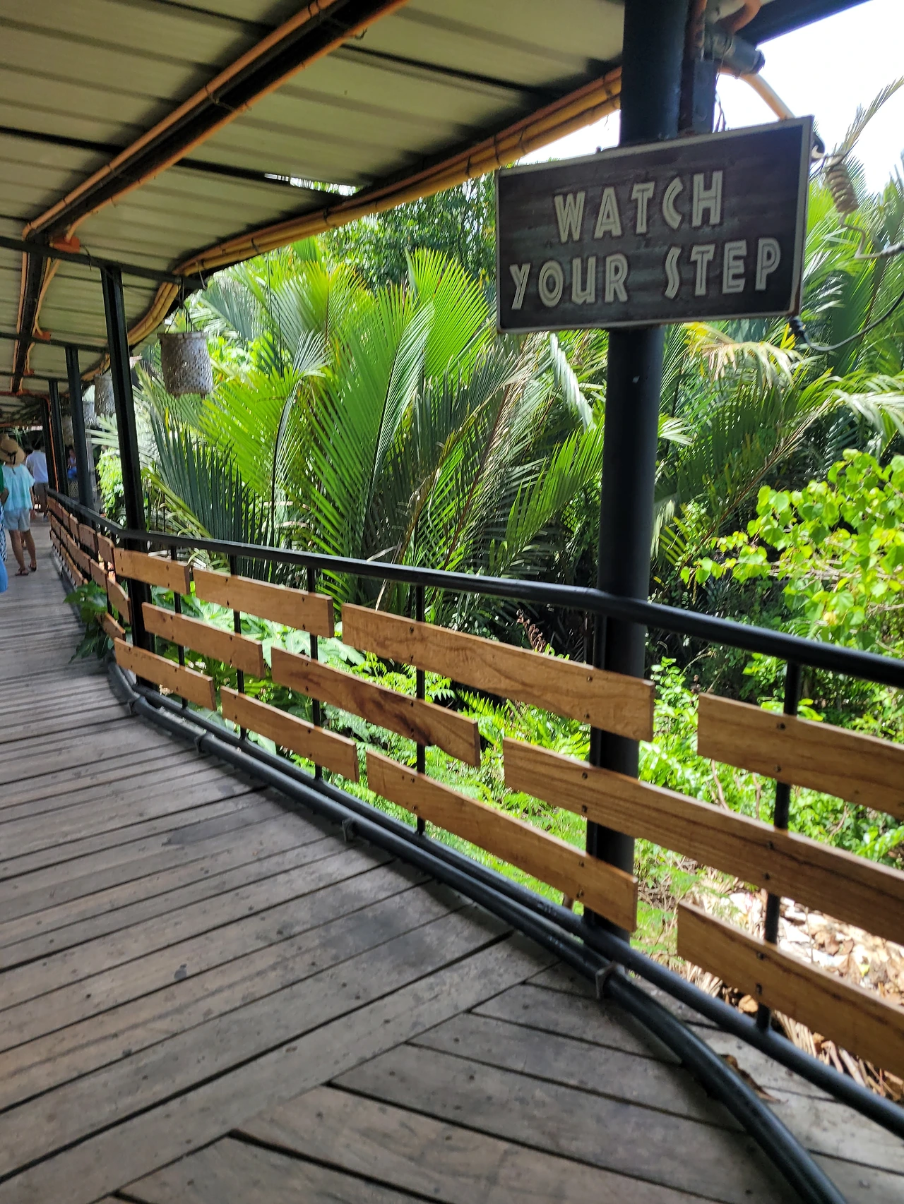 그렇게 기다리다가 우리가 유람선을 탈 차례가 되었다. 유람선을 타러 가는 길도 이색적이었다. 정글로 모험을 떠나는 기분으로 열대우림에서 자랄 것 같은 나무를 제치고 유람선에 올랐다. 유람선 위에는 테이블들이 있고 그 한가운데에 먹을 수 있는 음식들이 있었다. 이렇게 강 위에서 배를 타고 경치를 구경하면서 점심을 먹는다니! 식사 따로, 관광 따로가 아닌 식사와 관광이 합쳐진 콤보메뉴 같았다. 클레오파트라가 안토니우스를 유혹할 때 호화로운 배를 타고 왔다고 한다. 그 배에서 포도와 과일들의 향연이 벌어졌겠지. 마치 이집트 여왕 클레오파트라가 된 것처럼 나무로 만든 배를 타고, 음식을 먹으니 호사스러웠다.