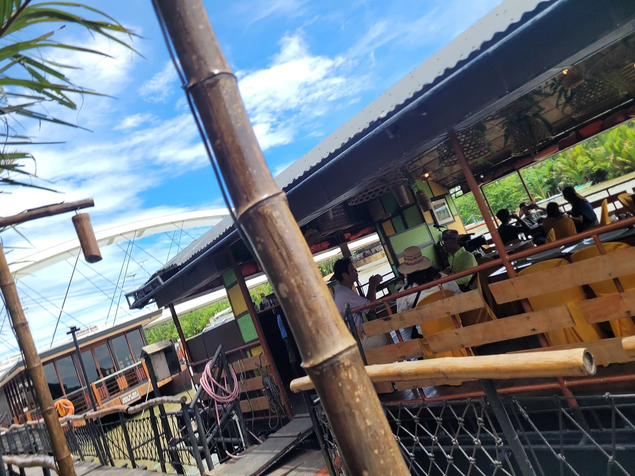 최대한 강과 가까운 안쪽 테이블에 가서 앉았다. 선상뷔페에서 내가 중점을 뒀던 건 먹는 것보다는 로복강을 구경하는 것이었다. 한 테이블 전체에 같은 여행사에서 패키지여행을 함께 온 일행이 같이 앉았다. 현지인 가이드들과 담당 한국인 가이드는 우리와 떨어진 곳에 자리를 잡았다. 크루즈가 출발하면서부터 뷔페를 먹을 수 있었다. 크루즈에 탄 정원에 비해서 음식이 차려진 공간이 좁아서 사람들이 많이 몰리기 때문에 처음에 뷔페 쪽에 가서 빨리 음식을 담아 올수록 좋다. 나는 빨리 먹고, 빨리 경치를 감상하고 싶어서 빨리 음식을 담기 시작한 편이었다. 음식을 덜고 있었는데, 한 뷔페음식 지점에서 반대편에서 오는 사람들과 마주쳤다. 직원이 오더니 우리 일행에게 반대 방향으로 돌아야 한다고 했다. 이미 우리는 4~5개 정도의 음식을 덜은 상태였는데, 우리 일행 중 한 명이 한국인 가이드에게 "이 방향이 맞아요?"라고 물었을 때, 그 한국인 가이드는 맞다고 대답했다. 우리가 우물쭈물 대고 있으니 크루즈 직원이 다시 다가와서 우리 방향이 잘못됐다고 말해줬다.