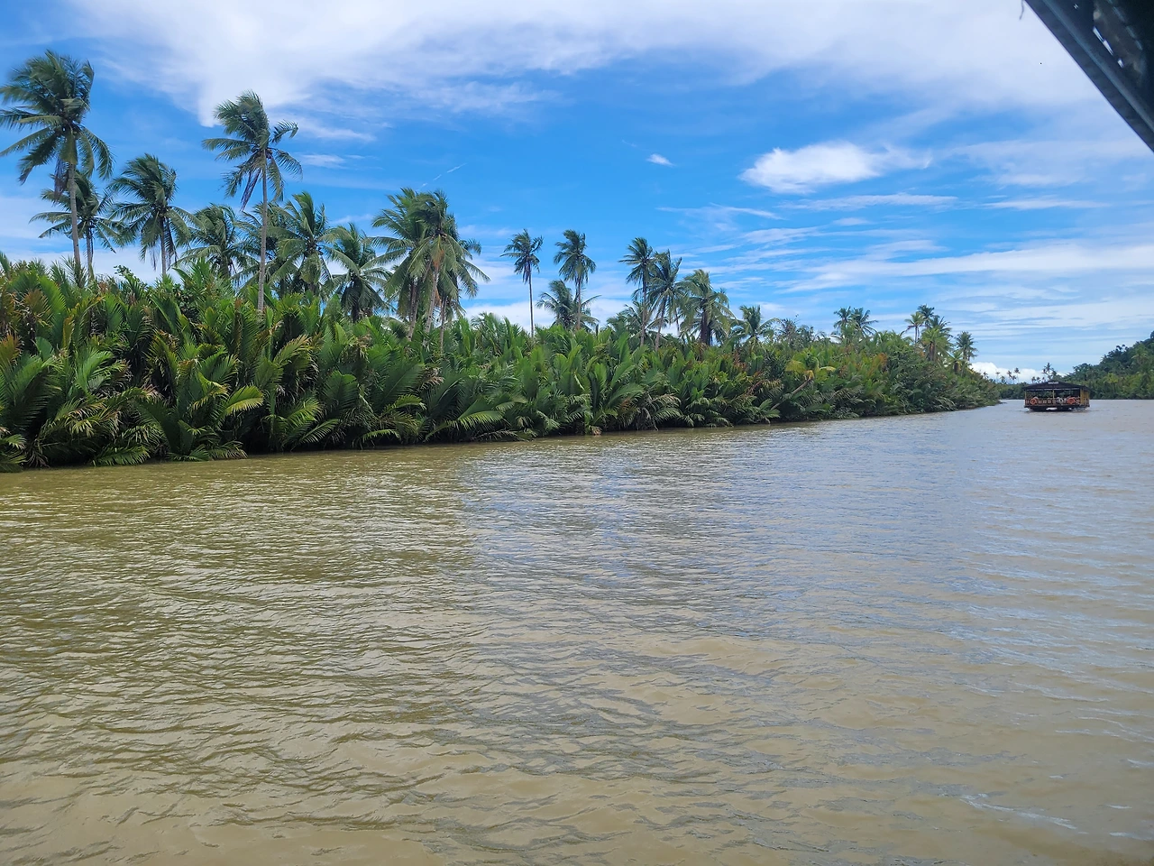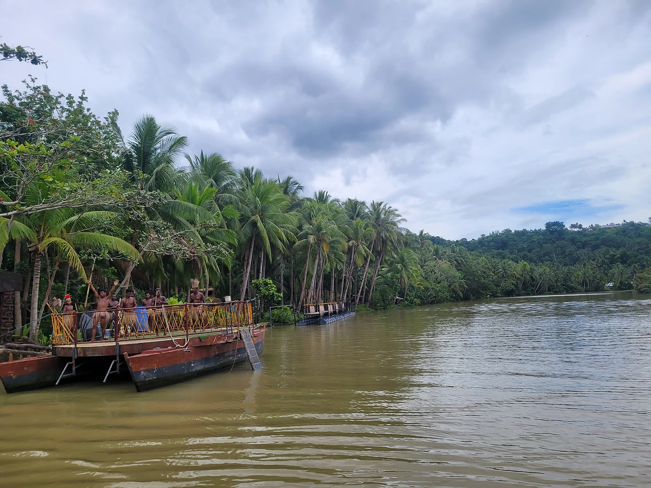크루즈가 초록색 물살을 가르며 나아간다. 파란색을 푸른색으로 표현하는 그런 초록색이 아니다. 강물 색깔이 나뭇잎 색깔인 초록색이었다. 열대우림에서 볼법한 뾰족하고 큰 잎을 가진 나무들이 늘어서있다. 날씬하고 큰 키를 지닌 야자수는 모히칸 스타일로 머리를 자른 것처럼 윗부분만 풍성한 이파리가 나 있었다. 초록색 이파리와 초록색 강물. 아마존 한가운데 온 것 같았다. 흐린 잿빛하늘은 로복강의 초록색을 더 돋보이게 해 줬다.