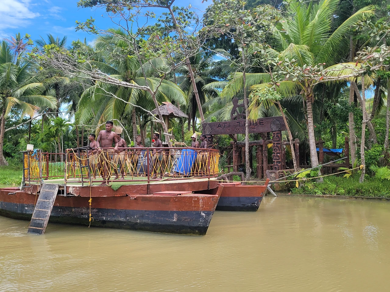 크루즈가 원주민이 사는 곳에 멈췄다. 필리핀은 원래 원주민이 사는 나라였다. 하지만 스페인이 필리핀을 지배하게 되면서 점점 스페인과의 혼혈이 늘어났다고 한다. 현재 우리가 보는 대부분의 필리핀 사람들은 혼혈이고 원주민은 조금밖에 되지 않는다고 한다. 오래전부터 이 땅을 지켜왔던 필리핀 원주민. 지프라기 같은 것으로 만든 치마를 입고, 구릿빛 상채는 내놓은 상태였다. 원주민들은 나무막대를 바닥에 일정한 박자로 두드리고 있었다. 빠른 템포의 소리는 호전심을 고취시켜서 전사의 사기를 북돋는 듯했다. 한 늙은 전사의 눈빛은 먹잇감을 바라보고 쫒는 독수리처럼 매섭고 강인했다. 내 머릿속에서 이미 그분은 '추장님'이었다.