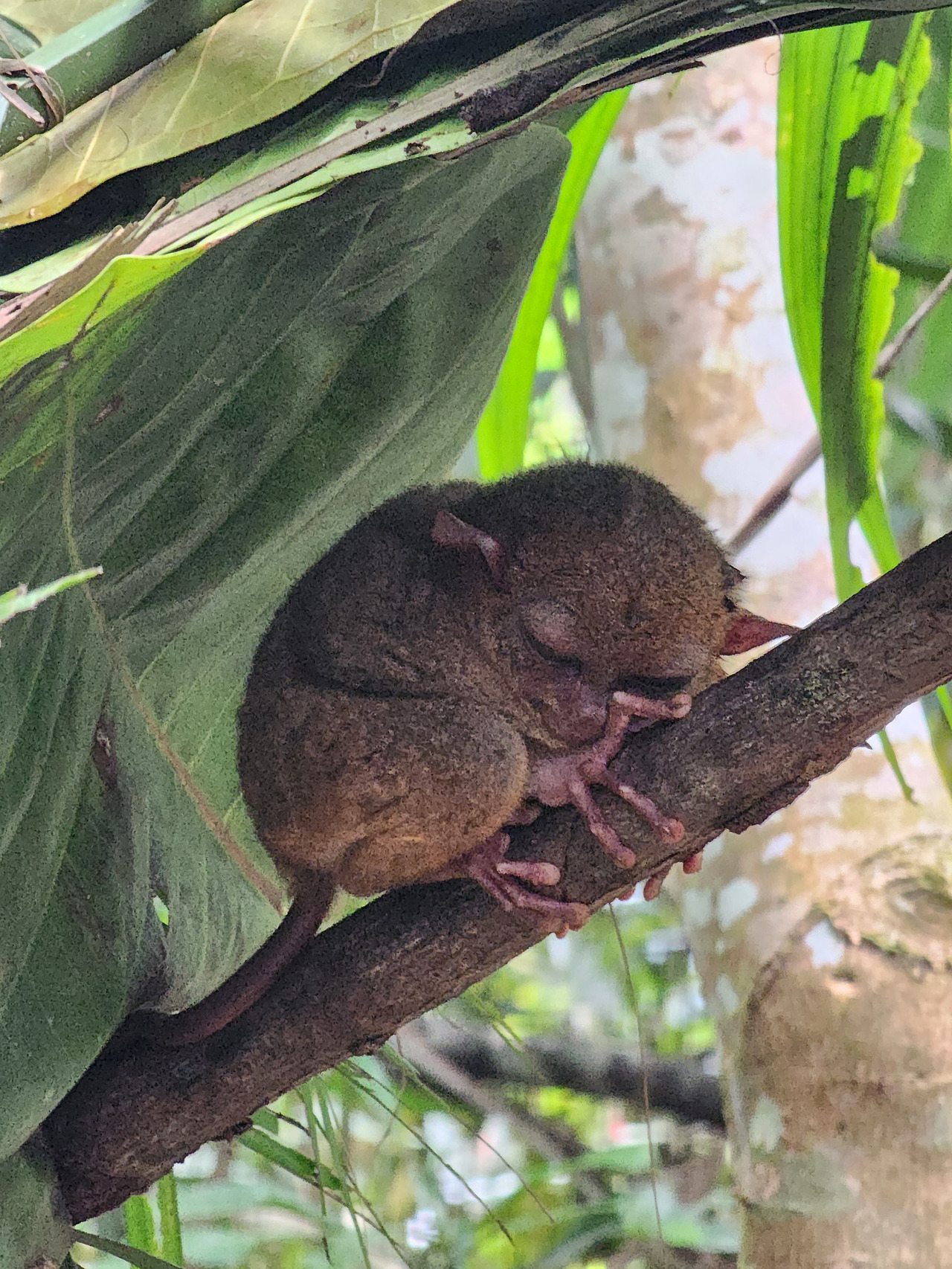 주먹만 한 작은 사이즈의 안경원숭이는 나뭇가지에 매달려서 애처롭게 자고 있었다. 자는 시간조차도 사람들의 구경거리가 되었지만, 이런 소란에는 깨지 않고 좋은 꿈을 꾸며 잘 쉬길 바랐다. 안경원숭이가 스트레스받으면 벽에 머리를 박으며 자살할 수도 있다고 해서 최대한 가까이에 다가가지 않고 멀리에서 바라보고, 사진을 찍었다.