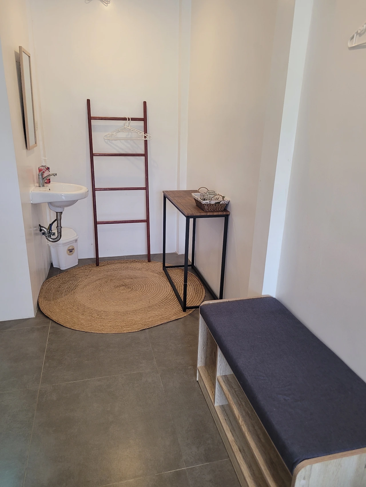 에어컨에서 나오는 차가운 공기가 아늑한 방 전체를 돌면서 습기를 말려주었다. 비닐팩에 넣어놨던 덜 마른 수영복을 꺼내서 벽면에 있는 사다리에 걸어놓았다. 공항 가기 전에 조금이나마 더 마를 수 있을 것이다. 장식용으로 보이면서도 실용적인 역할을 톡톡히 하는 나무사다리 소품이 좋았다.