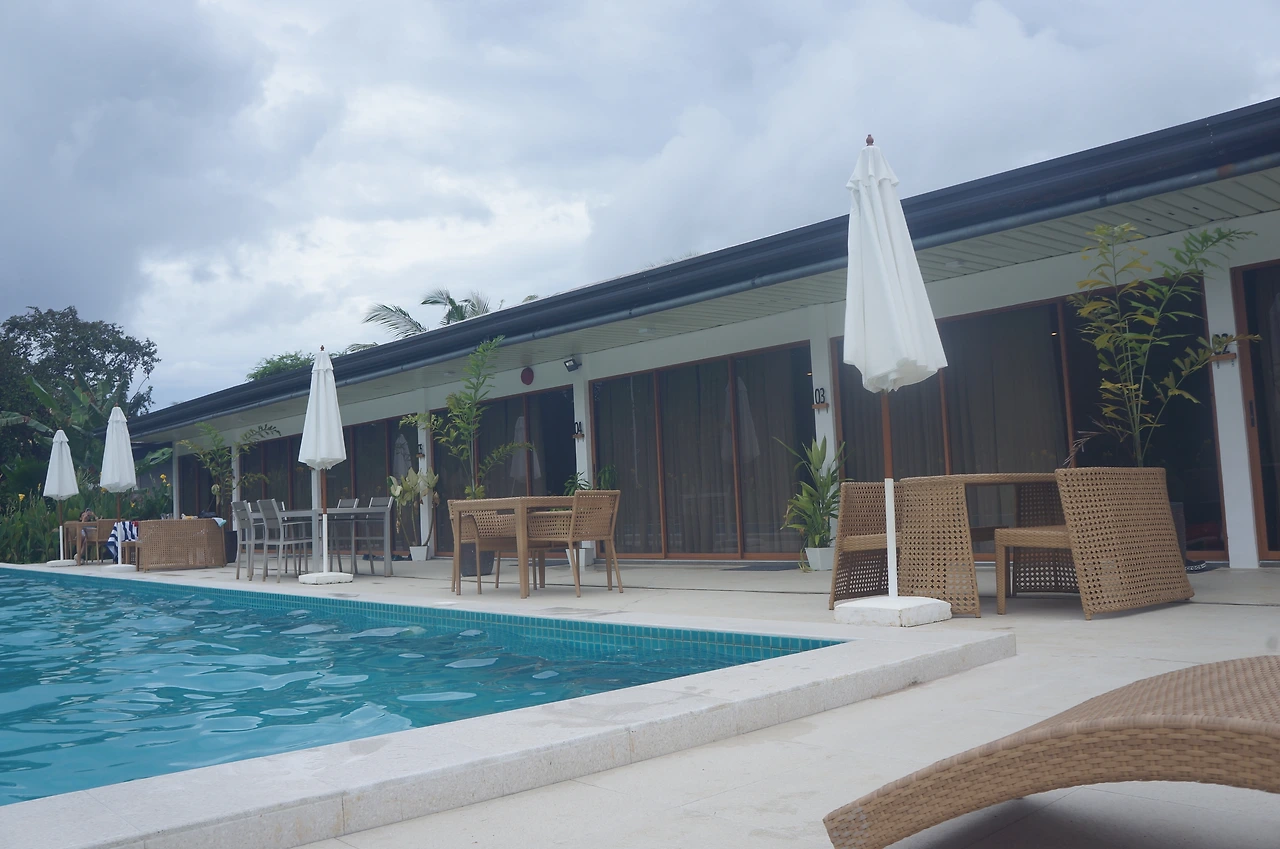 작고 아담한 숙소는 우리밖에 없는 것 같았다. 8개의 룸이 있는 단층 건물 앞에는 직사각형의 파란색 수영장이 건물만 하게 있었다.
