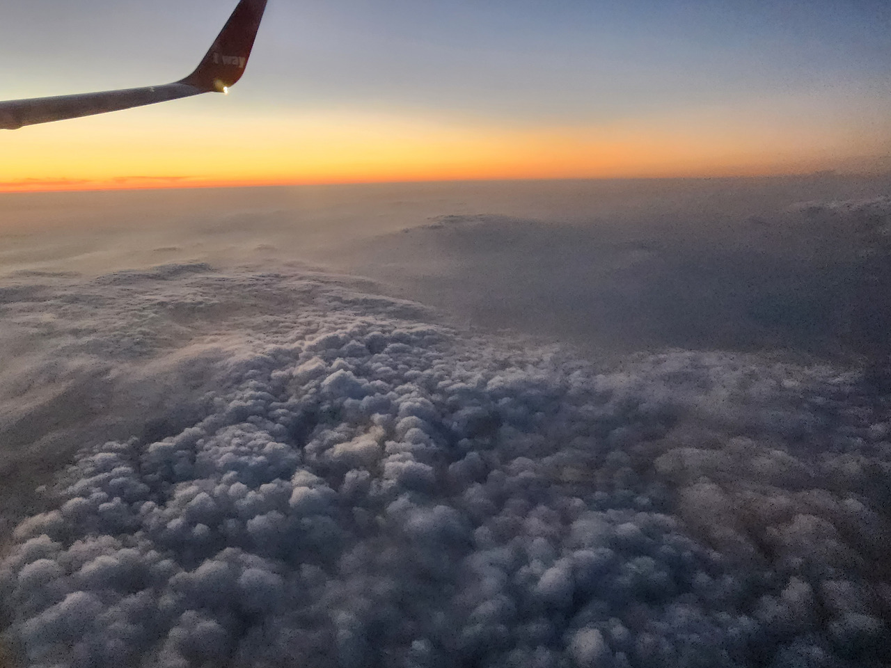 남편과 함께 있으면서 몰랐던 세상을 알아가는 게 재미있다. 그의 호기심 어린 눈빛을 따라가다 보면 놓친 것들이 눈에 들어온다. "컨디션관리"라는 명목하에 보지 않았던 창가. 비행기가 뜨고 나면 그냥 깜깜할 거라고 생각하고 바로 창문을 닫았었다. 이렇게 다양하게 노을 비스름한 것도 보이고, 구름도 보이고, 별도 보이고 이런 환상적인 풍경이 펼쳐질 줄은 몰랐었다.
