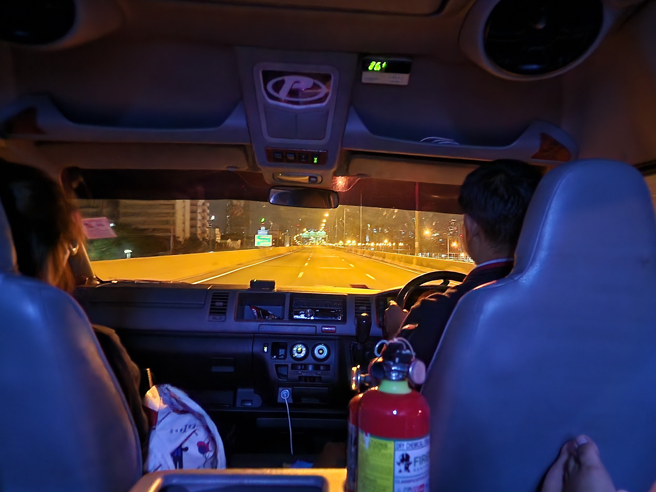 입국심사 후, 짐을 찾으러 갔다. 컨베이어벨트에서 오는 캐리어에서 눈에 띄는 주황색 네임택이 달린 캐리어, 한 개는 바로 찾았다. 하지만 나머지 하나가 너무 늦게 나와서 한참이나 기다렸다. 여행사에서 모이라고 한 곳에 가니 방콕에 도착한 지 50분이 지나있었다. 밝은 갈색으로 염색한 단발머리의 가이드는 우리를 반갑게 맞이했다. 우리가 가장 늦게 도착해서 민폐를 끼쳤을까 봐 걱정했는데 우리보다 더 늦게 온 팀도 있었다. 총 7명, 3개의 팀이 다 모이자 봉고차 정도되는 차에 탔다. 차는 가죽쿠션이 무척이나 편안했다. 우리가 다 탄 것을 확인하자 운전석에 여성 가이드가 앉았다.