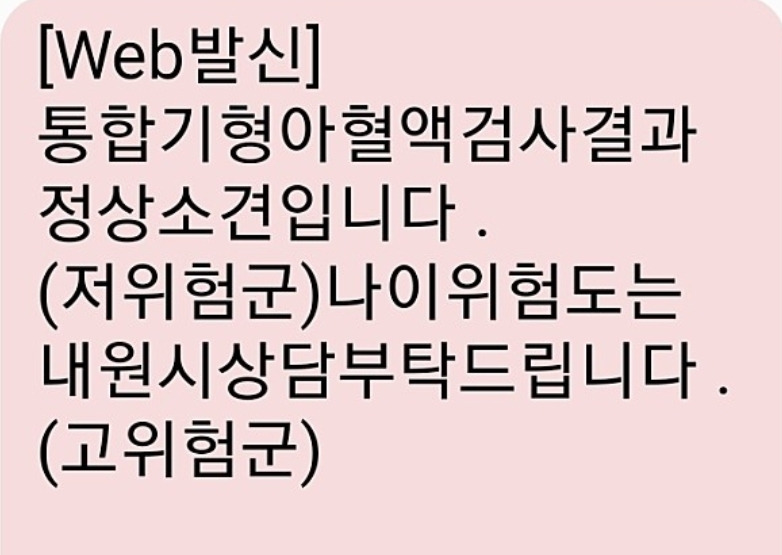 "통합기형아혈액검사결과 정상소견입니다."라는 문자를 받았다.