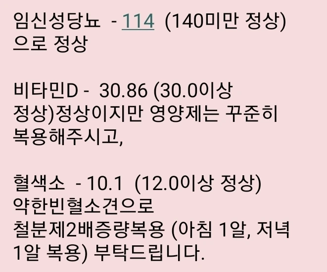 임신성당뇨, 철분, 비타민D 수치를 볼 거라고 했다.