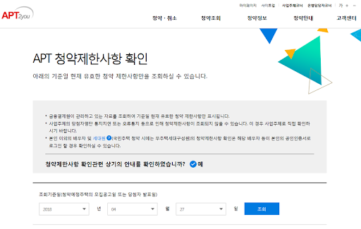 과거) 아파트투유 : 청약 조회 > 청약제한사항 확인