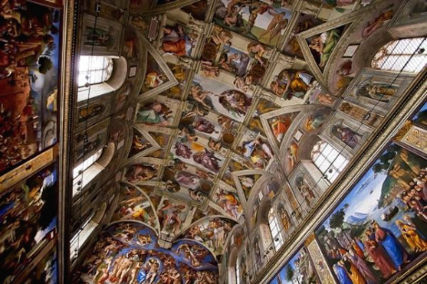 다만, 그가 아무리 천재였다지만 초보 화가가 어떻게 명작을 그려냈겠습니까? 동료 화가에게 회화의 기초와 일부 장면을 도움받습니다. 초기에는 캔버스에 그림을 그리듯 일반적인 사이즈로 그림을 그려냅니다. 시작 부분인 <노아의 방주>에 사람이 작고 많이 묘사된 탓이 바로 그 이유입니다. 하지만, 천장이 20m인지라, 세세하게 그려봐야 인물이 보이지 않는다는 것을 깨닫고, 그의 스타일대로 큼직하고 강렬하게 그려내지요.