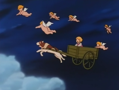 네로의 열정과 소망이 느껴지지요? 소년은 같은 또래의 소녀 아로아를 좋아했지만 그녀의 아버지는 네로가 가난하다는 이유로 냉대합니다. 더욱이, 그가 운영하던 방앗간에서 불이 나자 네로 탓으로 여기며 사람들까지 부추겨 괴롭히지요. 이후, 네로에게는 더욱더 큰 아픔이 오는데, 바로 네로 할아버지까지 세상을 떠납니다. 할아버지가 돌아가시자 네로는 파트라슈와 함께 살던 집에서 조차 쫓겨나게 되고 네로의 마지막 꿈이고 희망이었던 미술 콩쿠르 마저 떨어지게 되자 더욱더 큰 절망에 빠지지요.