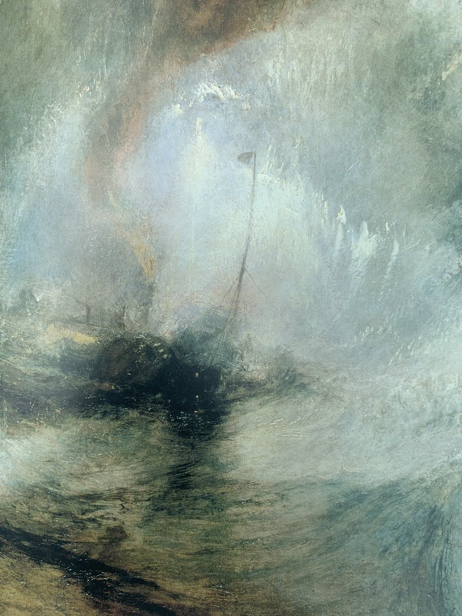 윌리엄 터너는 당시에 유행하던 낭만주의나 신고전주의에서 탈피하여, 완전히 새로운 형태의 미술을 추구했던 화가입니다. 열다섯의 나이로 왕립 아카데미에 입학할 만큼 천재였지요. 무려 30여 년을 앞서 인상주의가 가진 철학을 실천한 화가로 볼 수 있습니다. 그러나, 너무 앞서간 천재가 외로운 건 예나 지금이나 마찬가지일까요? 당대의 사람들은 말년의 그의 미술세계를 이해하는 이는 매우 적었습니다. 심지어 그를 비웃기도 했지요. 사람들에게 “비누 거품과 회반죽 덩어리”로 그린 그림이라고 놀리기도 했습니다.