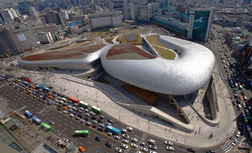 근대에 이르러 기술의 발달과 개인 공간의 효율적 활용을 위한 합리주의와 기능주의가 유행합니다. 어떤 의미에서 지금 우리가 살고 있는 환경은 근대시대에 이미 완성된 것이지요. 그렇다면 현대 건축의 흐름은 어떤 방향으로 흘러갈까요? 그 대답은 최근에 완공된 건물들을 보면 답을 조금 찾을 수도 있을 것 같더군요. 가령 동대문의 DDP를 보면 곡면의 형태를 띤 유기적 건축물의 형태를 많이 나타냅니다.