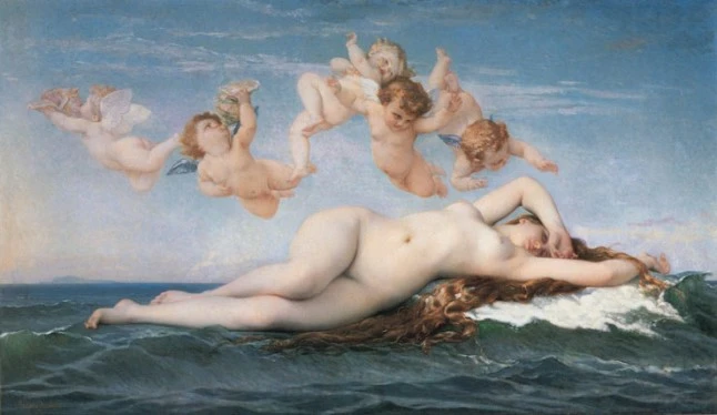 이 작품은 비너스가 아기 천사들에 둘러싸여 있는 모습을 아름답게 표현한 작품입니다. 정말 화려하고 환상적이기까지 해요. 부게로의 작품들이 그러하듯 여인의 모습은 아주 예쁘고 매력적입니다. 보통 관람객이 그의 작품을 보면 정말 잘 그렸다고 느낍니다. 실제로 봐도 정말 잘 그렸거든요. 붓질조차 느껴지지 않을 만큼 섬세하고 완벽에 가까운 비율과 구성을 보여줍니다. 아카데미즘 미술의 정점에 닿은 작품이라 할만합니다.