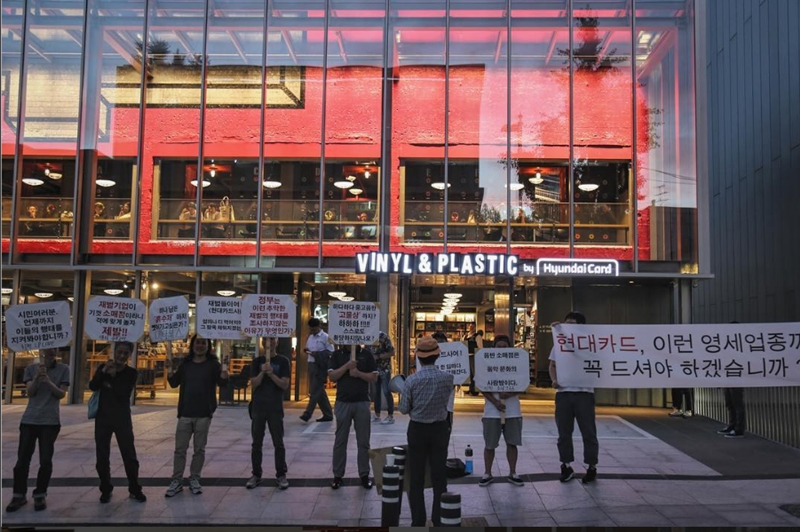 안타깝게도 바이닐 & 플라스틱은 시장을 확대하기 전 기존 시장부터 침해했다. 다른 현대카드 컬쳐 프로그램이 그랬던 것처럼 바이닐 & 플라스틱 역시 현대카드로 결제하는 이에게 20% 현장 할인을 제공했다. 이 것만으로도 바이닐 & 플라스틱의 산 너머에 있는 오랫동안 중고 LP 레코드를 취급해온 숍의 매출이 10-30% 정도 감소했다. 이 사건은 국내 레코드 LP 시장이 얼마나 작고 특수한지 보여주는 예가 됐다. 새 편의점을 오픈하는 일이었다면 위의 조건이 다른 편의점에 크게 타격이 되는 일은 없었을 거다. 수도권의 중소 레코드숍 사장들이 바이닐 & 플라스틱 앞에 모여 규탄 집회를 열었다. 현대카드가 LP 레코드라는 매개를 통해 구축하려던 맥락과 이를 통해 얻으려 했던 브랜딩은 미처 고려하지 못한 맥락에 의미를 잃었다. 바이닐 & 플라스틱은 중고 음반 판매를 중단하고 할인율을 20%에서 10%로 낮추는 대책을 발표했다. 이 과정에서 현대카드는 거듭 '상업적인 목적은 없다'고 밝혔다.