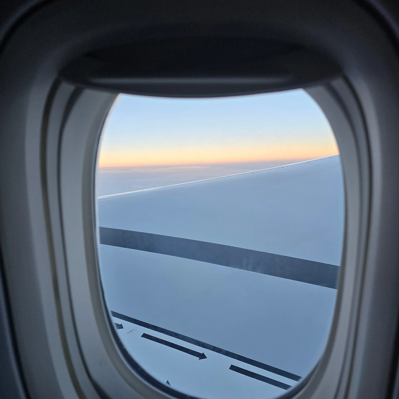창밖 풍경 중에 비행기에서 바라보는 풍경은 설렘 가득하다. 7월 말 우리 가족은 인천공항에 있었다. 한 시간 전까지 수하물을 부치기 해 극기훈련 같았던 짐 옮기기를 끝내고 지난 몇 달간의 집정리와 짐꾸리기를 끝내고 행기 좌석에 앉는 순간 '이제 출발이다'라는 신호탄 같은 이 창밖 풍경을 마주했다. 항공기 창문과 창밖풍경이 주는 설렘이 좋아 나는 몇 년 전에 이 그림이 그려진 리넨 가리개를 사서 안방 화장대 옆에 붙여 두었다. 이 그림을 보면 일상 답답함이 비행기를 타는 상상으로 조금이나마 누그러지는 듯한 느낌을 받곤 했다.