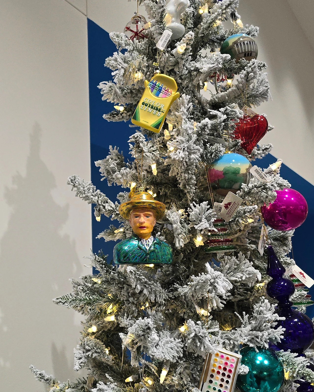 11월부터는 미국은 크리스마스 시즌이 시작된다. 마트에도 상점에도 워싱턴 DC 박물관 곳곳에도 트리가 만들어져 있고 트리를 장식하는 오너먼트(Onarment)에 진심이다. 이 시기에 리스마스 오너먼트만 파는 가게가 한시적으로 운영되고 백악관에서는 그 해 오너먼트를 기념품 샆에서 팔기 시작한다. 위에 사진 속 트리는 워싱턴 DC에 있는 국립 미술관인 내셔널 갤러리 (National Gallery of Art) 1층 기념품 샵 앞에 있는 트리로 이 박물관에 소장된 고흐 자화상 모양의 오너먼트와 크레용, 팔레트 같은 술과 관련된 오너먼트로 꾸며져 있다. 뻐서 몇 개 사볼까?라는 마음으로 가격표를 보고 순간 깜짝 놀랐다. 정말 갖고 싶은 한 두 개 오너먼트만 포인트로 구입하고 지극히 개인적인 그 해 가족과의 추억이 담긴 집에 있는 작은 물건들로 꾸미는 트리도 특별하고 의미 있어 보인다. 또한 크리스마스 시즌이 끝나는 1월 중순쯤 최대 70프로까지 할인하는 기간을 이용해서 정말 갖고 싶었던 것을 장만하는 소소한 즐거움도 누려보자