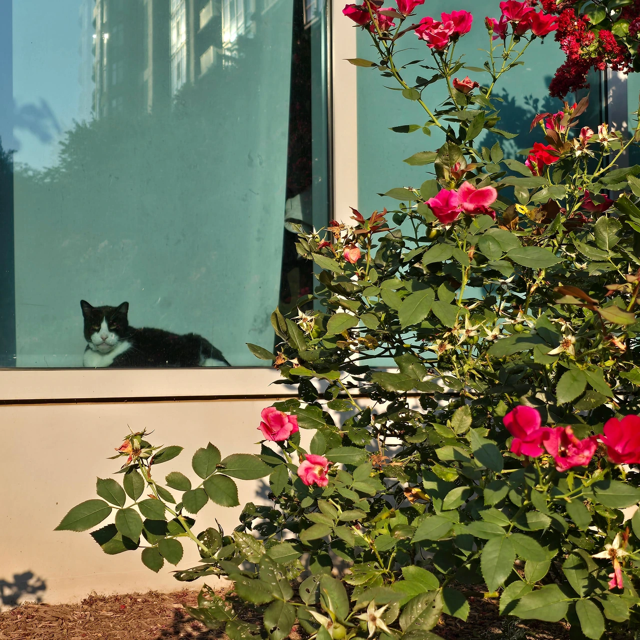 시차적응을 어느 정도 끝낸 우리 가족은 동네 산책을 했다. 8월의 미국 버지니아 날씨는 한국에 비해 그리 덥지도 않고 습도도 높지 않았다. 우리 가족의 눈엔 미국의 거리도 나무도 표지판도 다 신기하고 새롭다. 아파트 1층 블라인드 앞쪽으로 나와서 햇볕을 쬐고 있는 고양이에게 인사를 한다.