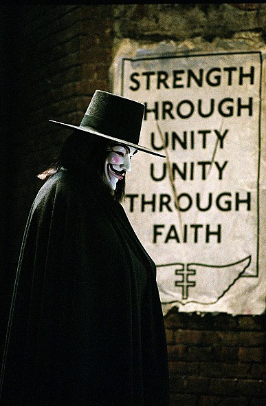 브이의 '11.5 선언'은 묘하게 교훈적이면서도 기분이 나쁘지 않았다. 입바른 소리를 하면 밉상일 때도 있는데 이상하게 수긍이 가는 건 그는 사람들과 다르게 도전했고, 성공할 수 있다는 걸 그 방송으로 보여주었기 때문이다. 그는 재판소를 시원하게 폭파하면서 1812 서곡을 들려주었고, 언론이 통제되는 상황에서 정규 방송을 차단하고 비상 방송을 장악해서 자신의 생각을 펼쳐 보였다. 방송국에서는 황급히 그를 검거한 것처럼 내보냈지만 이미 사람들은 믿지 않기 시작했다. 그들의 마음을 흔들고 내년 11월 5일을 기대하게 만든 것이다. 1년 후 11월 5일이 다 되어선 사람들의 마음을 완전히 사로잡아버렸다. 모든 집에 자신과 똑같은 가면과 망토를 선물하면서 사람들은 거리에 나올 준비가 되었다. 그 가면을 쓰고 망토를 걸치고 한마음으로 거리를 활보하며 표현할 수 있게 되었다. 그리고 자정이 지났을 때, 400여 년 전 가이 포크스의 생각처럼 시원하게 국회의사당을 날려버렸다. 사람들이 의미를 부여해 준 건물은, 사람들에게 의미를 잃었을 때 쓸모를 다 한다. 국가나 정부에도 이는 똑같이 적용된다.