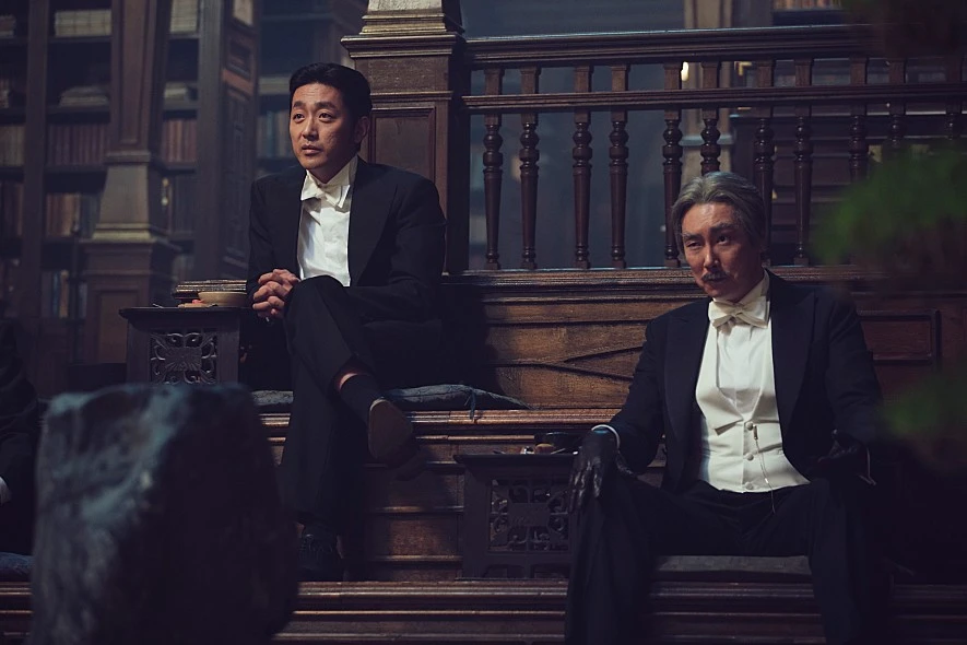 세상에서 책을 제일 좋아하는 부유하신 코우즈키 나리 마님. 일본인 귀족인 척했던 제주도 출신 백작과 하룻강아지 같은 하녀 숙희 덕분에 썩 즐겁지 못하다. 아끼던 책들은 처참히 망가졌고, 낭독을 맛깔나게 해 줄 배우도 없다. 히데코가 재산을 다 찾아갔으니 새로운 책을 사거나 관리할 경제적인 여유도 없어졌다. 함께 이야기를 들은 신사들 역시 아쉬움이 완연할 것이다. 그들은 상상에 푹 빠져 이야기 속 등장인물에 감정이입을 하곤 했다. 얼마나 짜릿했을지 몰라도 우리가 보는 그들은 낭독이 울려 퍼지는 서재에서 눈을 형형하게 빛내며 때때로 주먹을 불끈 쥐거나 숨을 들이켜거나, 모자로 다리 사이를 가릴 뿐이다. 우리는 그들의 상상을 짐작할 뿐이고,