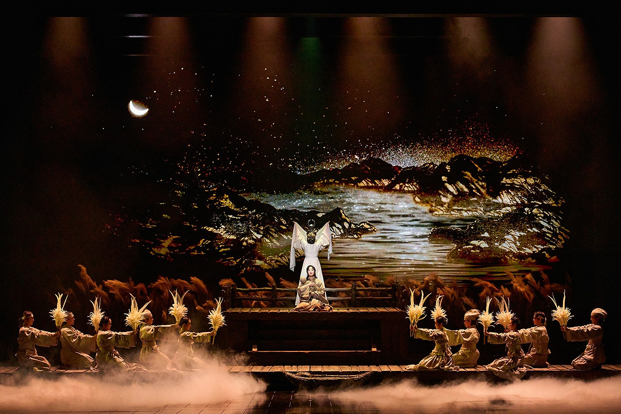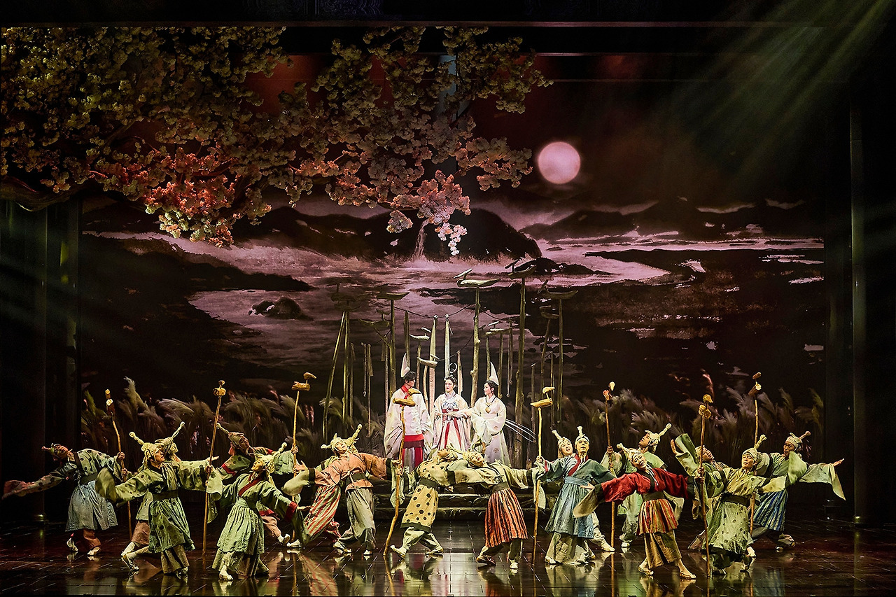참 '고운' 공연이었다. 공연 내내 배경으로 수묵화 그림이 다양하게 펼쳐지는데 소매가 긴 의상과 아기자기한 소품과도 잘 어울려서 무대의 느낌을 한층 살려주었다. 앙상블을 포함해서도 의상 소매가 특히 아름다워서 눈이 무척 즐겁다.