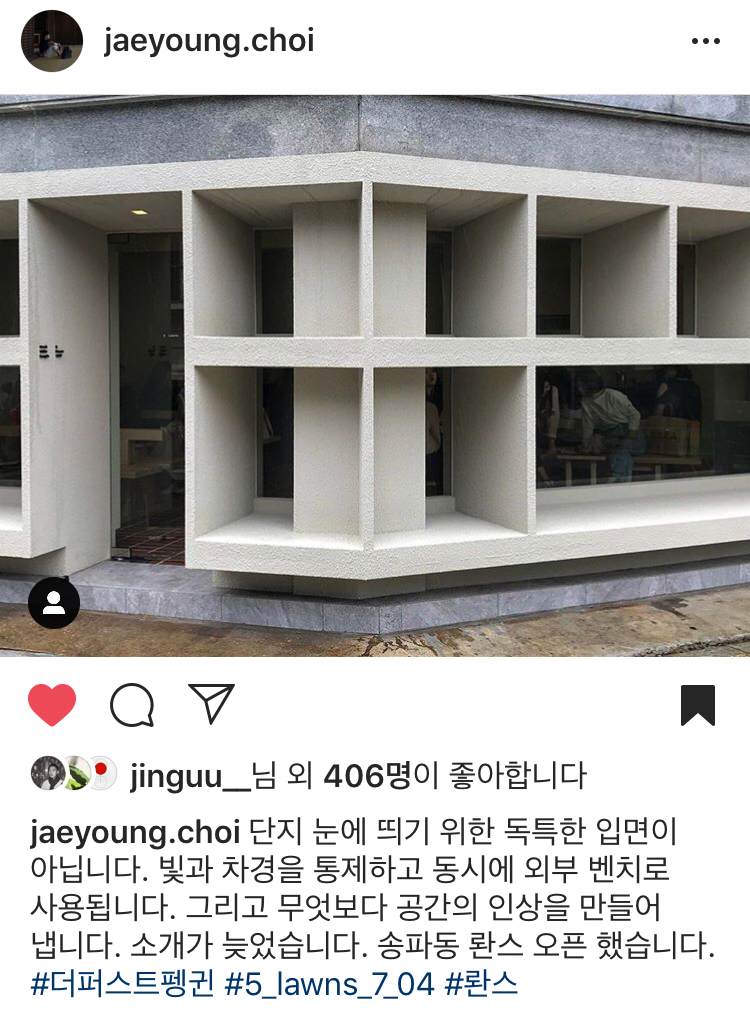 이 곳을 방문할 예정이거나 호기심이 든다면 'Lawns'음악과 더불어 그들이 인스타그램을 통해 추천하는 음악들을 들어보기를 추천한다.
