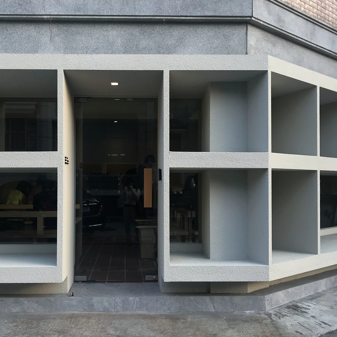그래서 롼스는 과연 그 기준 -기존의 장소(동네)와 잘 어우러지는가- 에 부합하는지도 주의 깊게 보았던 것 같다. 밖에서 느껴지는 구조 자체는 위압감을 느끼게 할 만큼 파격적이지만 마감재의 색감과 느낌이 차분한 웜 그레이 톤이어서인지 기존 건물과 이질감이 들지 않았다. 단연 눈길을 끌 수밖에 없지만 거슬리지는 않는 것이다. 호기심을 불러일으킴은 분명하다. 동네 사람들은 “여긴 뭐하는 데래? 특이하네.”하며 기웃기웃했을 것이다.