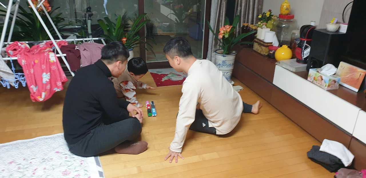 어머니 집에 도착하자 마자 샤워를 하고 세탁기를 돌렸다. 머리를 잘 말리고 아버지가 오자마자 사진 하나를 찍는다. 때마침 사촌 동생이 우리집을 방문했기에 같이 사진을 찍는다. 그럴듯하다. 좋아. 아버지 폰으로 사진을 보내놓았다.