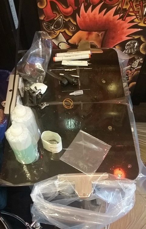 작업 시작 전 용품을 세팅하는데 서두름이 없었고, 루틴대로 여유 있게 준비하는 모습이었다. 손이 가는 모든 용품에는 일회용 비닐이 씌워졌고 작업대에는 기포 하나 없이 깔끔해질 때까지 세팅을 반복했다. 신중하게 머신을 결합하는 모습에 장인이라는 단어가 떠올랐다. 손님의 모든 소지품은 정해진 공간에 보관하게 되어있었다. 시계나 장신구, 휴대폰도 모두 꺼내 놓아야 했다.