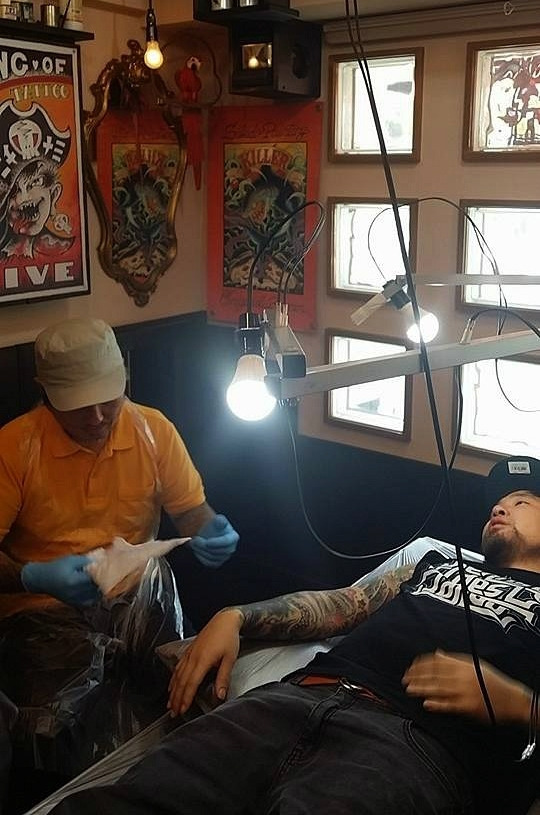작업은 1세션(회)에 4시간 전후로 진행된다. 작업비는 고정되어 있기 때문에 한 번 안내하면 더 이상 돈 이야기를 할 필요가 없었다. 휴식 시간 없이 연속으로 빠른 작업을 하는 방식이었다. 대단한 집중력이었다. 머신은 굉음을 내었고 다른 타투보다 상당히 고통스러웠지만 그만큼 빠르고 정확했다. 만족스러운 결과물과 그의 경력에 비해 가성비가 넘쳤기 때문에 더욱 좋았다.