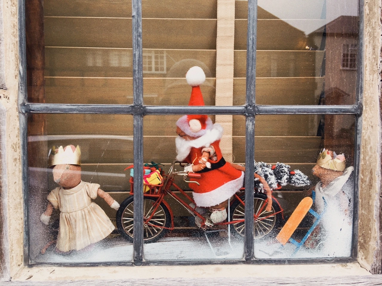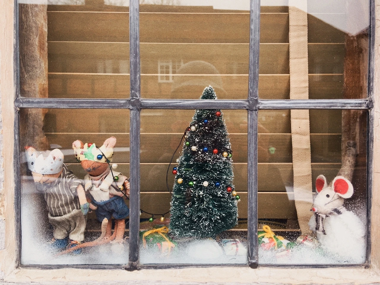 크리스마스 때는 또 어떤가? 영국인들은 1년 내내 선탠 휴가와 더불어 크리스마스를 손꼽아 기다린다던데 아니나 다를까, 창문틀 사이로 집주인의 고퀄 잉여력이 폭발했다. 빨간 산타복을 입고 자전거로 크리스마스트리를 배달하는 산타쥐부터, 온 식구가 명절 내내 먹어도 냉동실행이 분명한 통통한 칠면조 식탁을 구현한 디테일까지! 봐도 봐도 감탄만 나온다.