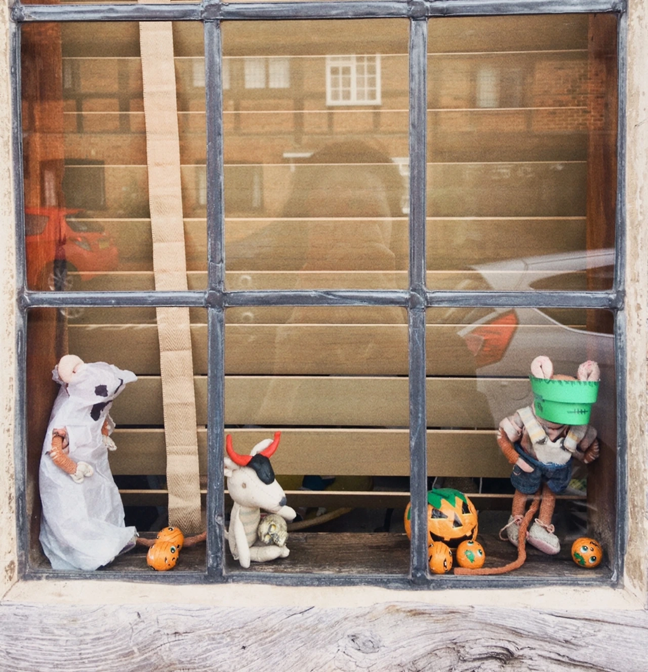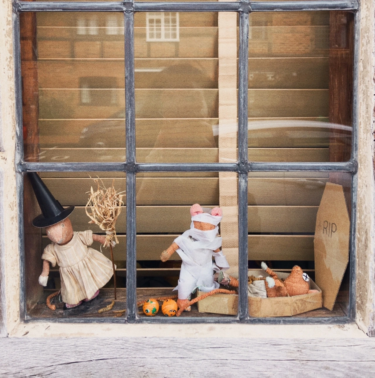 평소 소박하면서도 고풍스러운 자태에 감탄하며 지나던 이 집 창가에서 재미난 스토리텔링을 발견한 건 핼러윈 무렵이었다. 안 그래도 창가에 이쑤시개로 만든 집 모형을 전시해놓았을 때부터 예사로운 집은 아니다 했다. 그러다 한 땀 한 땀 헝겊을 꿰매 만든 쥐 인형들에게 화장솜이며 두루마리 휴지, 마트표 초콜릿 등으로 핼러윈을 익살스럽게 승화한 작품들을 보니 발걸음을 멈추고 키득거릴 수밖에.