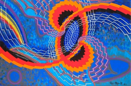 일찍이 모던아트협회를 결성해 흔히 '이발소 그림'이라 일컫던 사실주의 화풍의 국전에 대항한 새로운 조류를 이끈 한묵 화백. 그의 화풍은 1969년 이전과 이후로 극명하게 나뉜다. 1969년 아폴로 11호의 달 착륙. 인간이 달에 첫걸음을 내딛는 장면에 큰 충격을 받은 그는 이후 3년 간 붓을 들지 못했다. 구시대의 공간 개념을 뛰어넘어 시공을 결합한 4차원의 세계를 화폭에 담고자했던 그. 평면의 캔버스에 움직이는 공간을 표현하기 위해 다양한 시도를 이어갔다. 끝없이 순환하는 이 거대한 우주의 에너지를 백지에 담아내기 위해.
