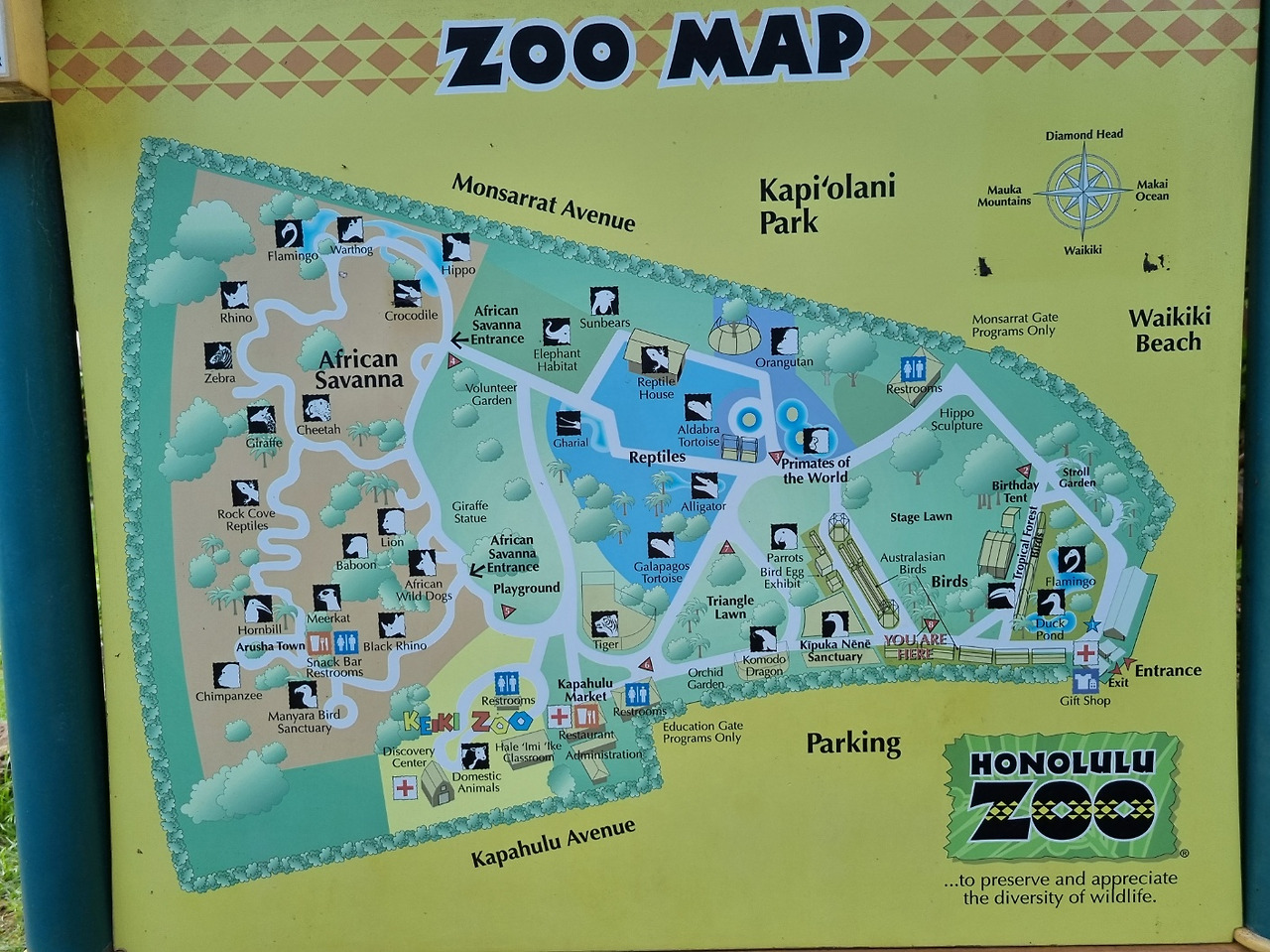 Honolulu Zoo는 태국의 Open Zoo(태국 가시는 분들 아이들 있다면 강추!!)나 San Diego Zoo나 한국의 동물원에 비해 그리 좋다고 평가하기는 어려운 곳이에요. 다만, 동물들이 칼라풀한 것이 많아 소소한 보는 재미가 있고 동물원 안에 많은 식물들이 있어 어른들은 나무들을 보는 재미가 있어요. 2년 전 우리 아이들은 외할머니, 친할머니와 함께 하와이에 와서 갔던 곳이고 잘 때마다 호놀룰루 동물원에서 산 코끼리 인형과 함께 자 왔기에 그 친구들을 사러 오늘 방문했어요.