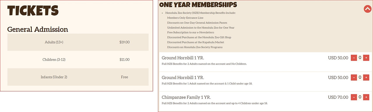 오늘 방문하면서 알게 된 놀라운 사실은 네 명 1회 입장료와 1년 프리패스 멤버십 가격이 동일하다는 것이었어요. 긴가민가해서 현지인에게 물어봤더니 하와이는 대부분의 1년 프리패스권의 비용이 1회 또는 2회 방문비용과 비슷하다고 하네요. 네 가족 입장권이 $68인데 1년 멤버십이 $70이에요.