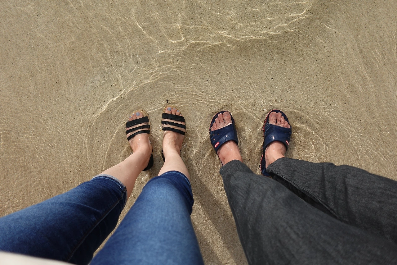 아들과 함께 바닷물에 처음 발을 담가보았어요~~ 쪼만했던 아들이 이제 키도 발도 저보다 커요^^