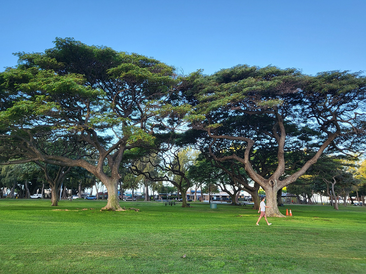 두 번째는 Honolulu Zoo옆에 있는 카피올라니 공원이에요. 공원에서 요가, 달리기, 체조 등 다양한 운동하는 사람들을 만날 수 있어요. 물론 새들도 있지요
