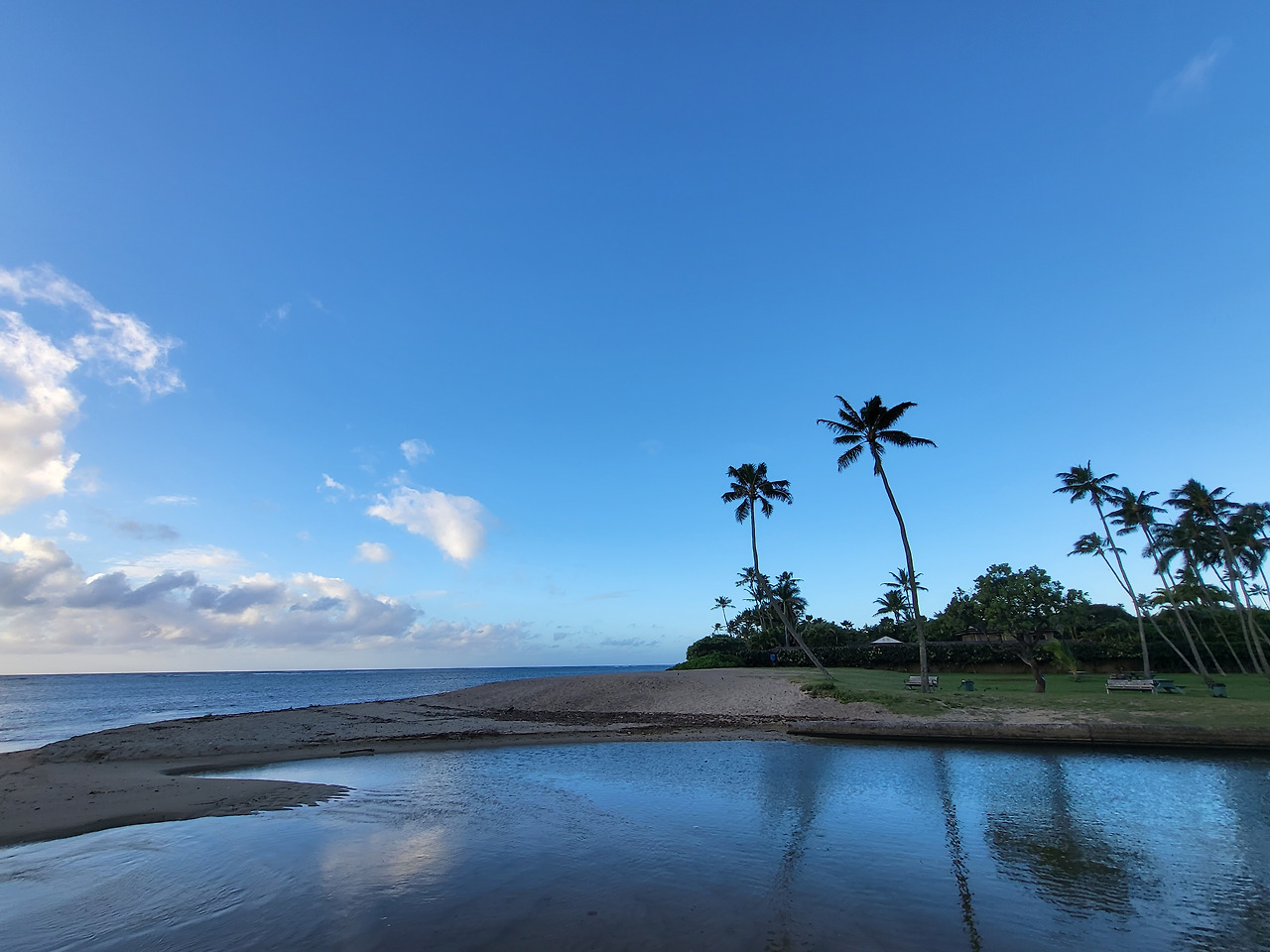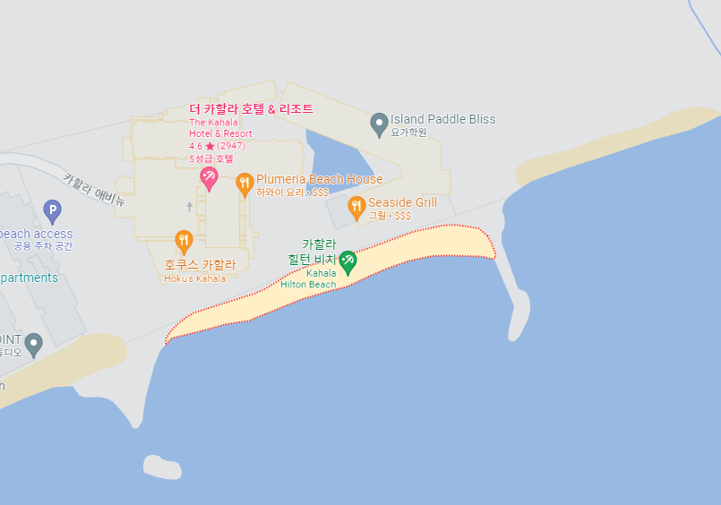 세 번째 가장 강추하는 곳은 카할라 힐턴 비치에요. 카할라 호텔 & 리조트 앞인데 정말 프라이빗하면서 조용하고 밝아오는 아침을 맞이할 수 있는 곳이에요