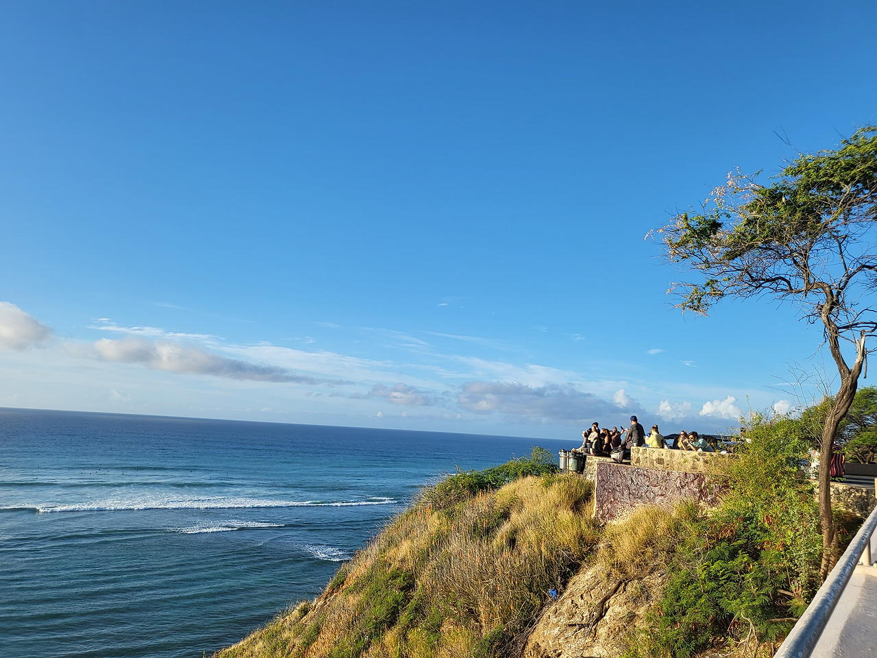 본격적인 산책코스를 소개하기 전에 맛보기 코스 먼저 소개할게요. 다이아몬드 하이킹은 아마 여행으로 오시면 하실 텐데 다이아몬드헤드전망대도 가볼 만해요. 지나갈 일이 있으면 잠깐 들러서 드넓은 바다를 한번 보고 가세요. 가슴이 뻥 뚫리는 기분이에요. 서핑하는 분들도 볼 수 있어요