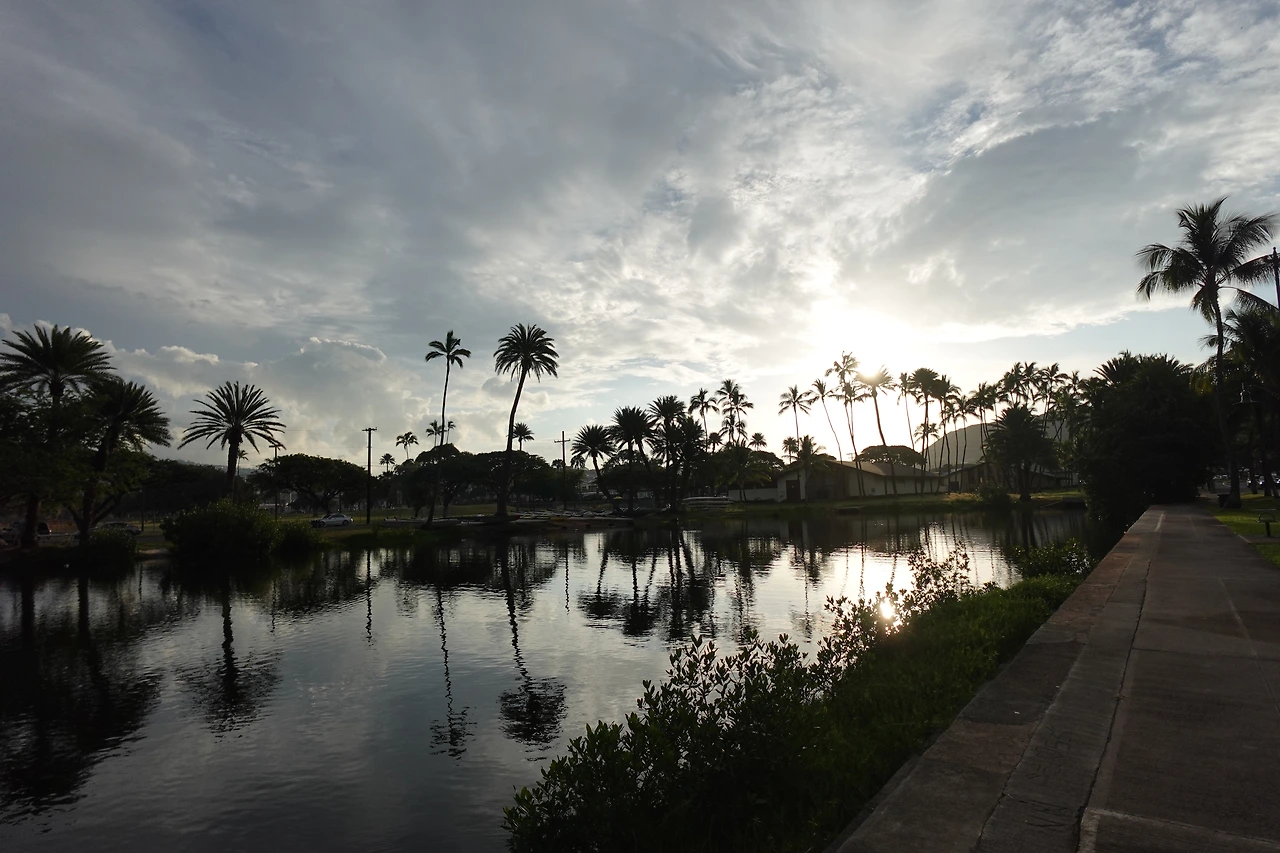 첫 번째로 소개할 산책 코스는 와이키키 옆에 있는 인공호수라고 하는 Ala Wai Canal Fishery Management Area라는 곳이에요. 와이키키에 머물면 누구나 지나가는 곳인데 특히 아침에 가면 진짜 운치 있고 좋아요