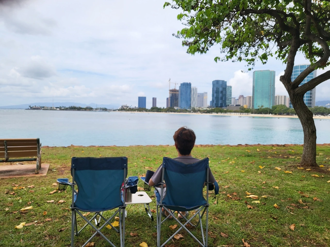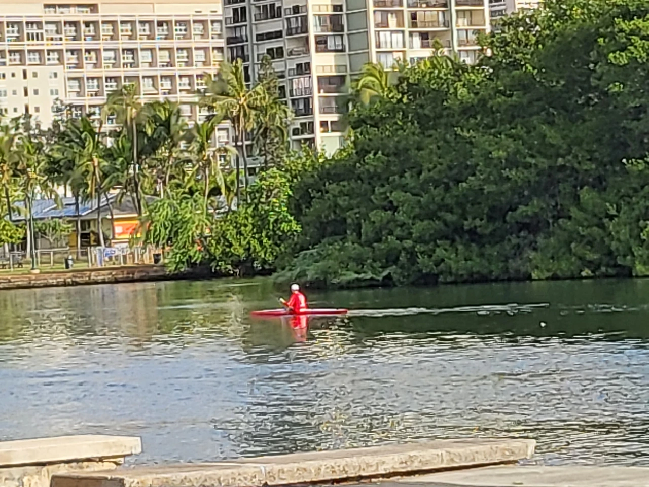 그런데 오늘은 도저히 피곤해서 안 되겠더라고요. 그래서 다이아몬드 전망대에 차를 세워놓고 40분 동안 잠을 잤어요. 바다를 보면서 차에서 낮잠 자는 것도 나쁘지 않더라고요. 일어나서 주변을 봤더니 그곳에 노숙자가 정말 많더라고요. 먹을 것도 별로 없을 텐데 그 높은 곳에서 어떻게 사는지 궁금하더라고요. 이동하는 중 알라와이 운하에서 카누 또는 카약 타는 사람들이 있더라고요. 하와이에서 일 열심히 하는 사람들은 보기 어려운데 열심히 노는 사람들은 많이 볼 수 있어요.