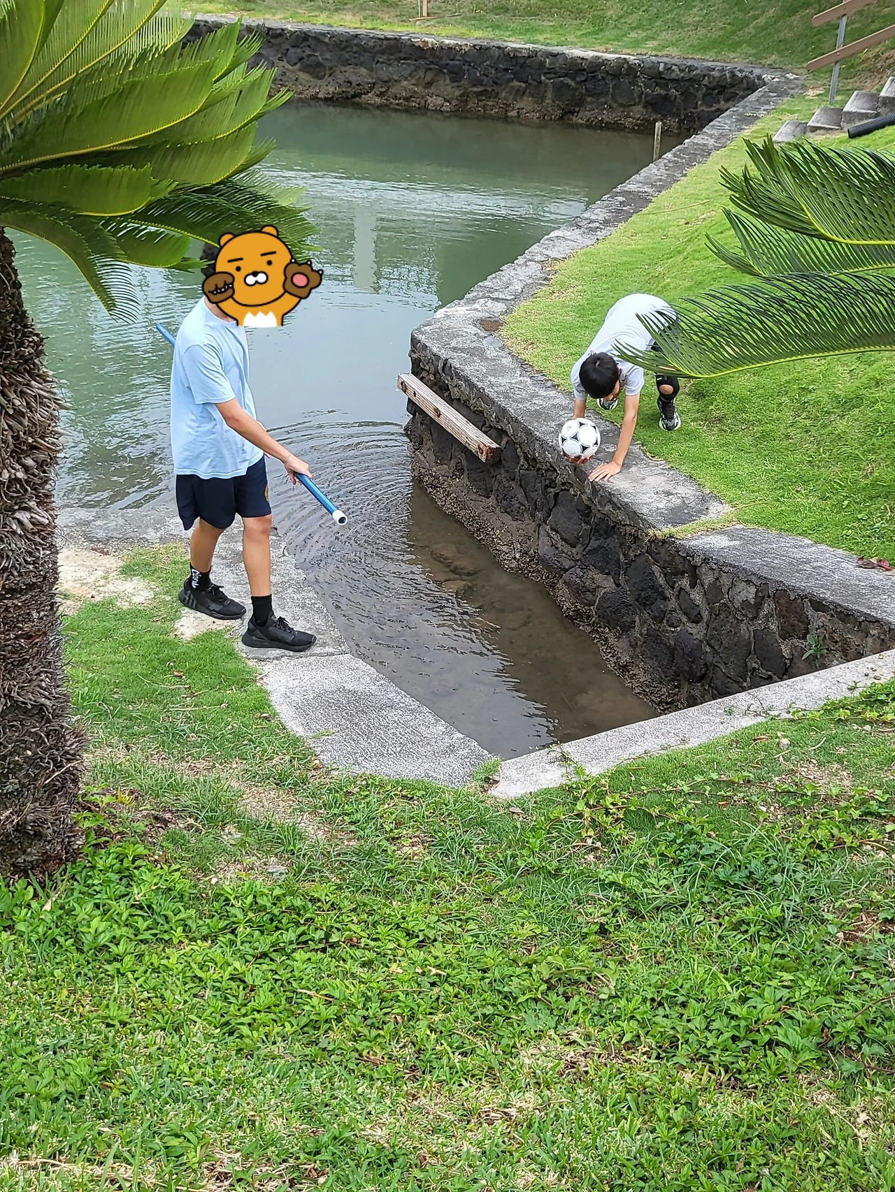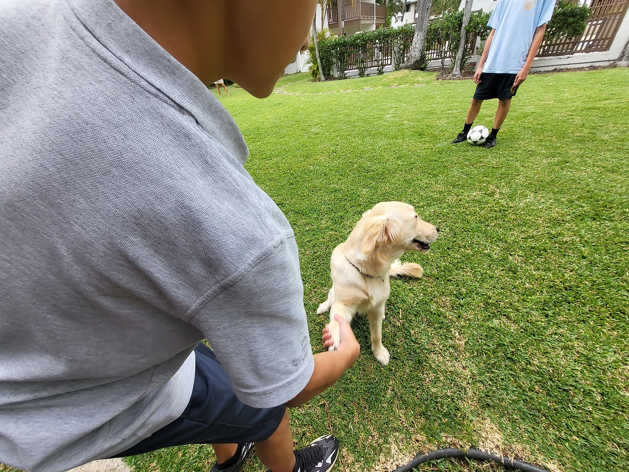 물에 빠진 공도 줍고 윗집 강아지 Duke랑 놀기도 했어요