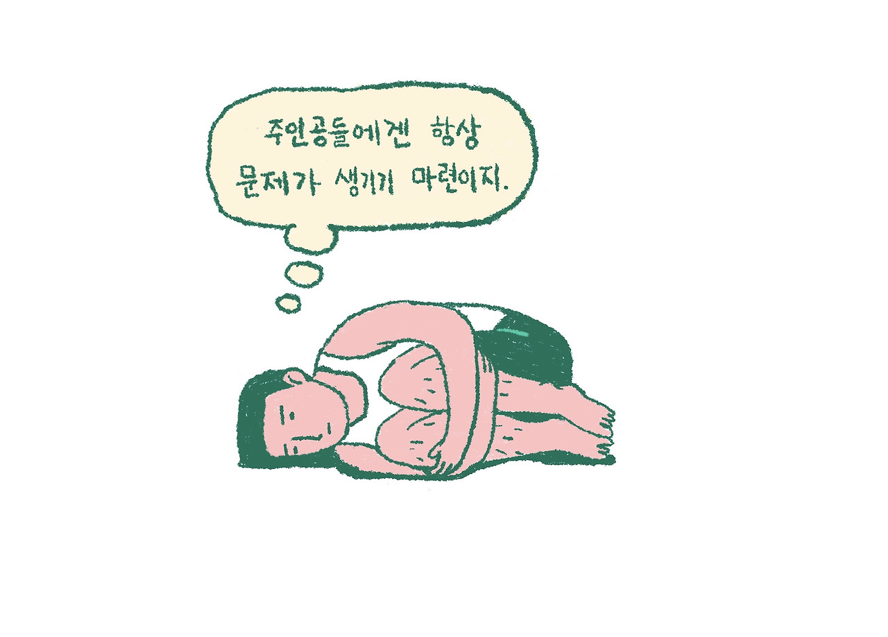 많은 영화와 드라마, 소설 속 주인공의 삶은 평범하다. 물론 주인공이 히어로나 도깨비, 백만장자처럼 특별한 경우도 있지만 대부분 주인공은 우리와 다를 바 없는 평범한 사람이다. 어떻게 평범한 사람이 중심이 되느냐, 우선 그에게 문제가 생겨야 한다. 평범한 영업사원이 사고로 터널에 갇히거나(<터널>), 평범한 택시 기사가 아픈 역사의 한복판에 있게 되는(<택시 운전사>) 식이다. 꼭 생사가 걸린 대단한 문제만 이야기가 되는 것은 아니다. 소소한 문제도 훌륭한 소재가 된다. 빌려주고 못 받은 돈을 받으러 전 남자친구를 찾아가거나(<멋진 하루>), 15년 전의 첫사랑이 고객으로 찾아오는(<건축학개론>) 일상적인 갈등도 한 편의 영화가 된다. 중요한 건 아무 갈등 없인 이야기가 시작되지 않는다는 점이다. 결국 주인공은 문제를 겪는 인물이라 할 수 있다. 마냥 편안하고 빛나는 삶을 사는 존재가 아닌 크고 작은 문제들로 고민하고 갈등하며 고통 받는 존재다.