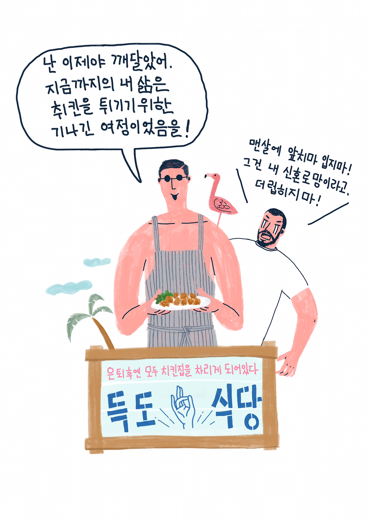 회사를 다닐 때였다. 회사의 남자들은 모이기만 하면 앞으로 뭘 해서 먹고살까 하는 문제를 고민했다. 그리고 그 중심엔 언제나 장사가 있었다. 요즘 커피숍은 너무 많아, 당구장도 은근 괜찮다던데, 제주도에서 게스트하우스 어때? 요즘은 핫도그가 뜬대요, 에이 프랜차이즈는 본사만 돈 버는 거라 별로, 그래도 프랜차이즈가 안전하지 않나? 그렇게 각자 생각해뒀던 아이템과 정보들을 하나씩 꺼내놓고는 신중하게 분석하고 계산기를 두드려가며 그 가능성을 타진해 보곤 했다. 결론은 늘 가게를 차릴 돈이 없다는 것이었지만.