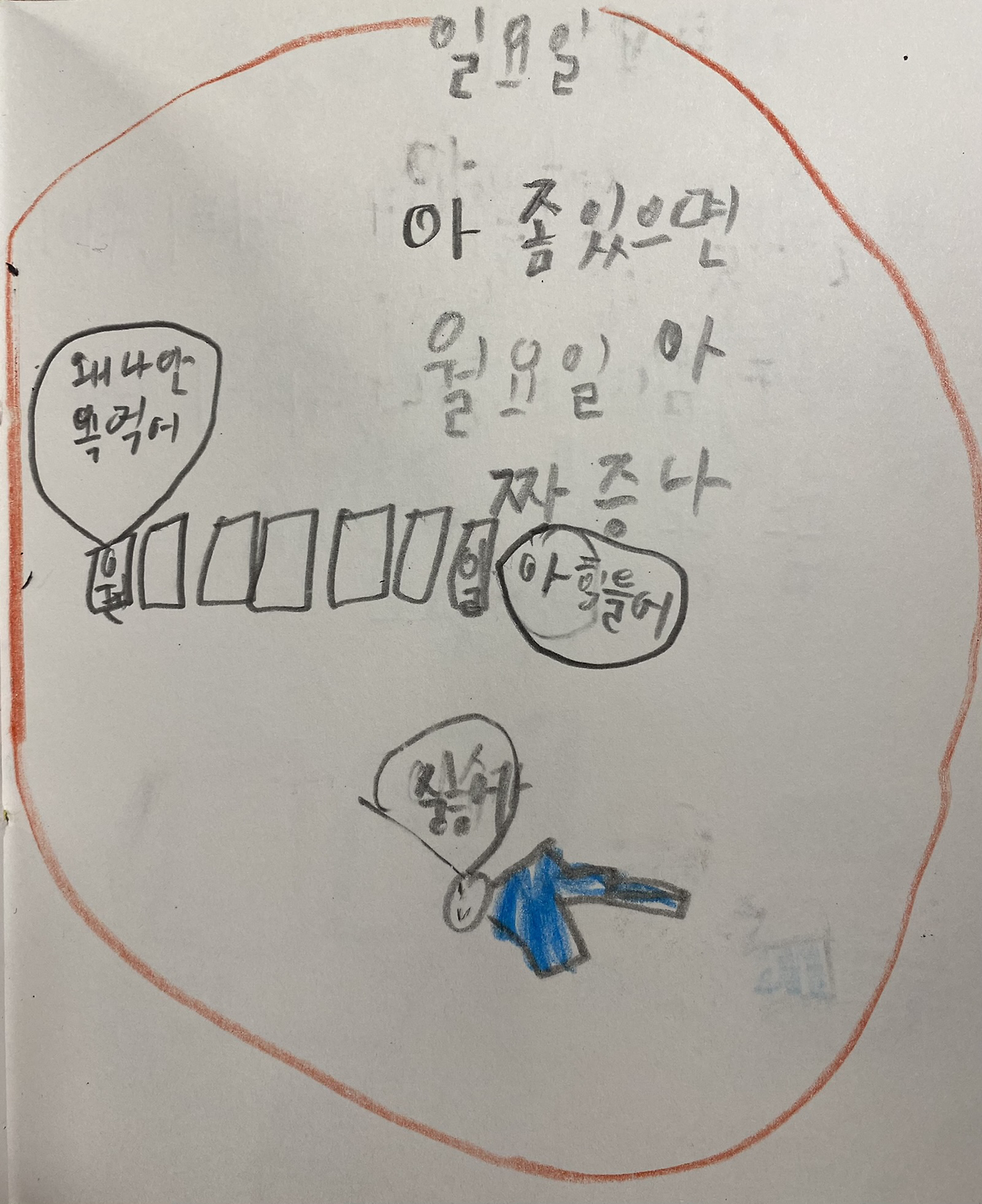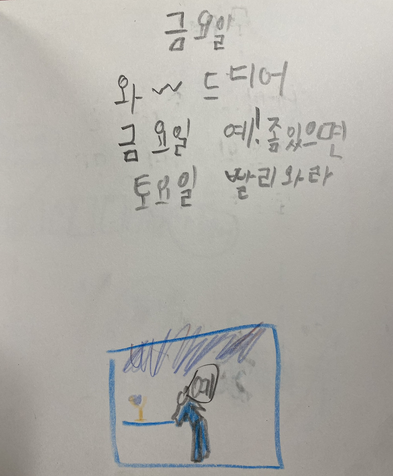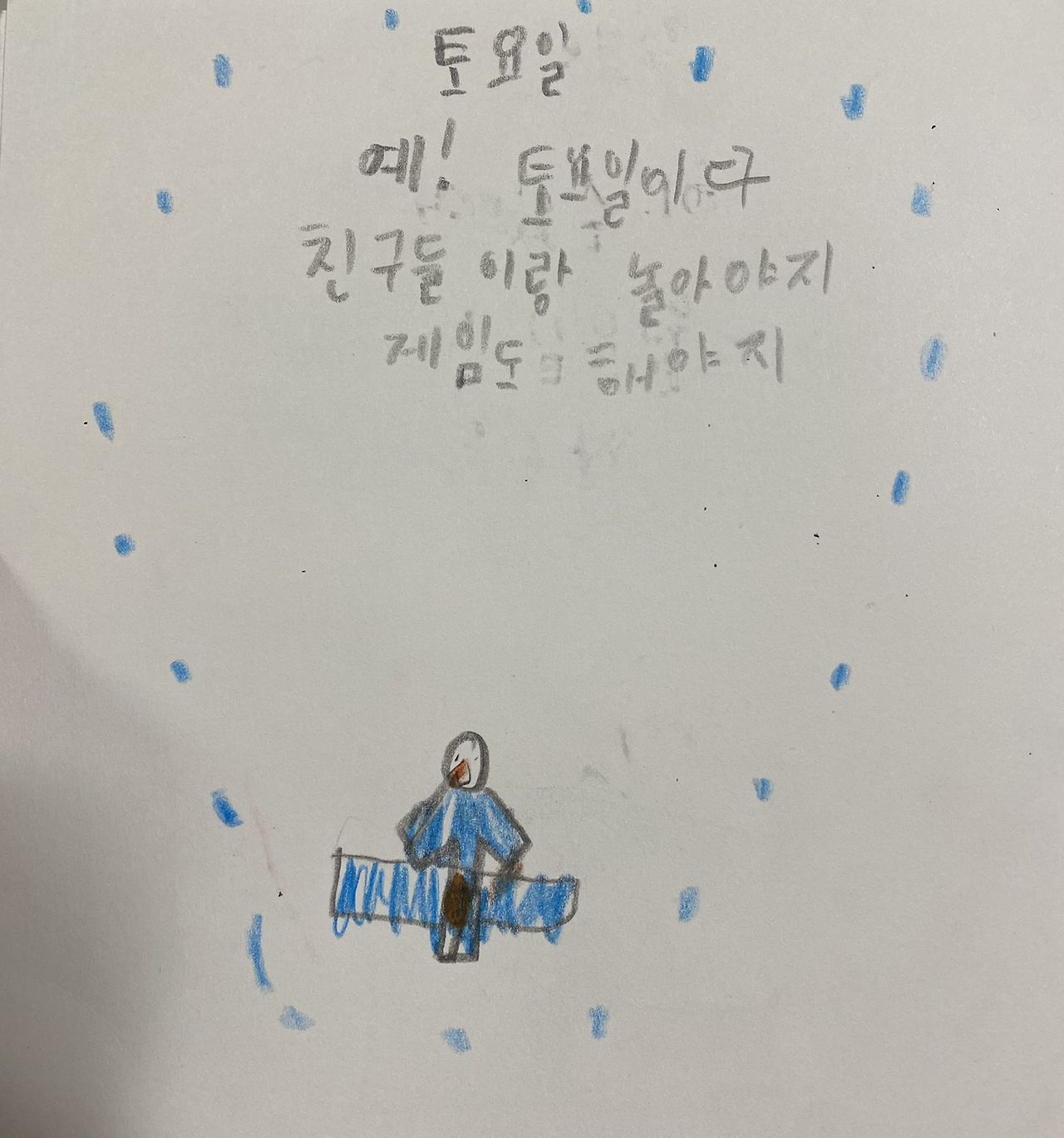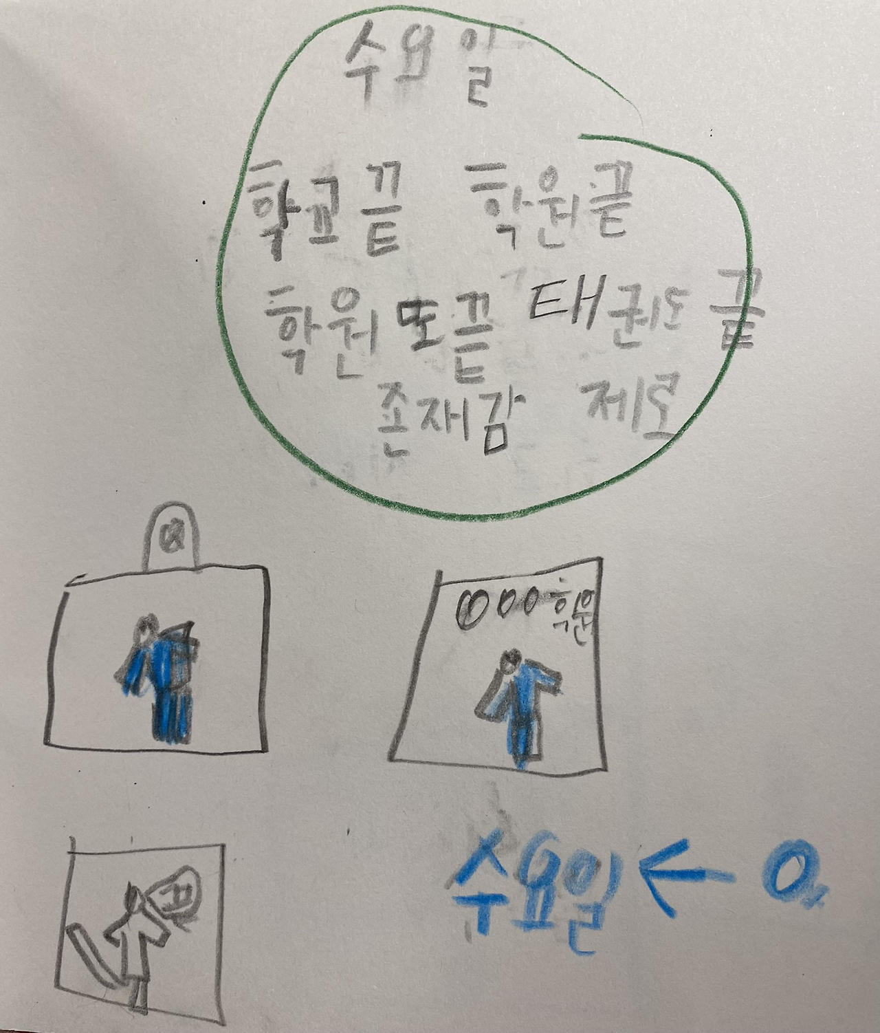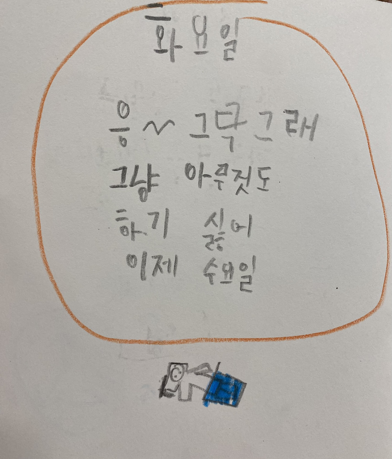 사실 토요일 그림은 도통 의미를 모르겠다. 빨리 친구들과 놀고 싶어서 후다닥 그린 듯.